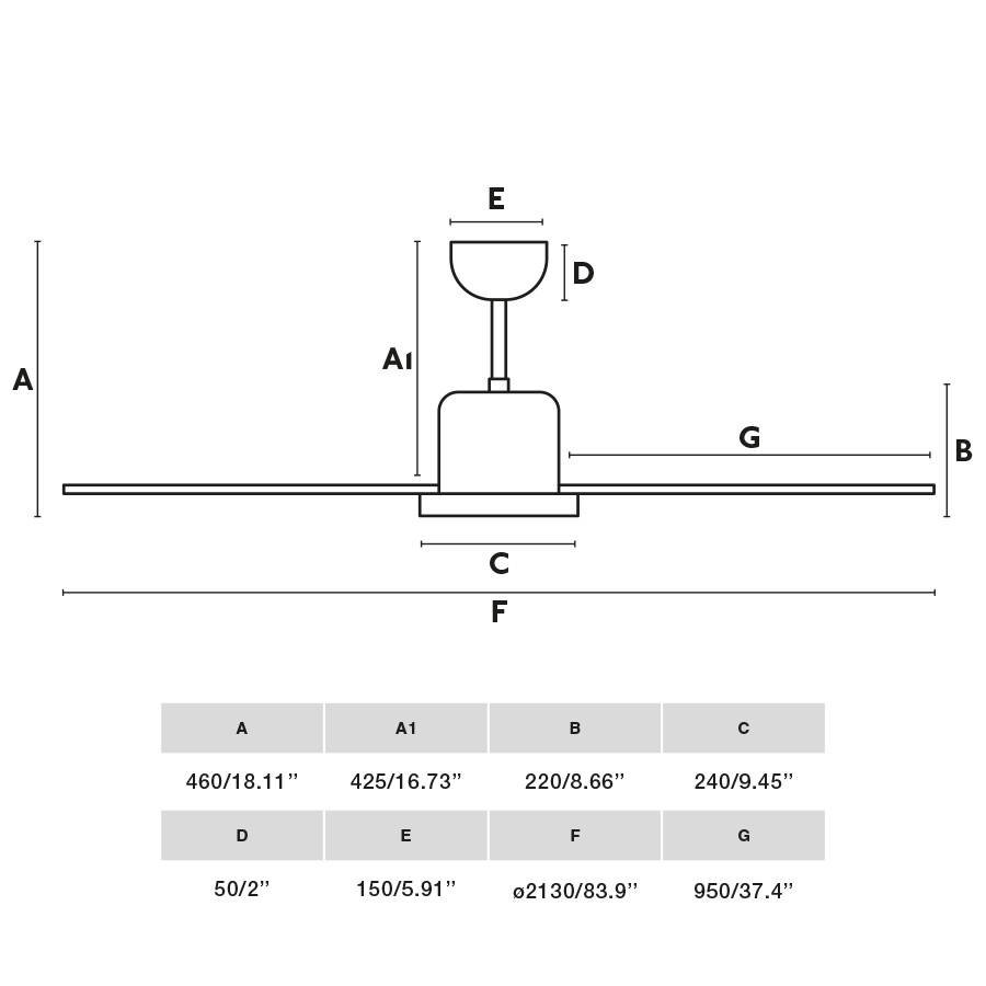 FARO Barcelona Andros Xl ceiling fan steel matt black H 46.0cm