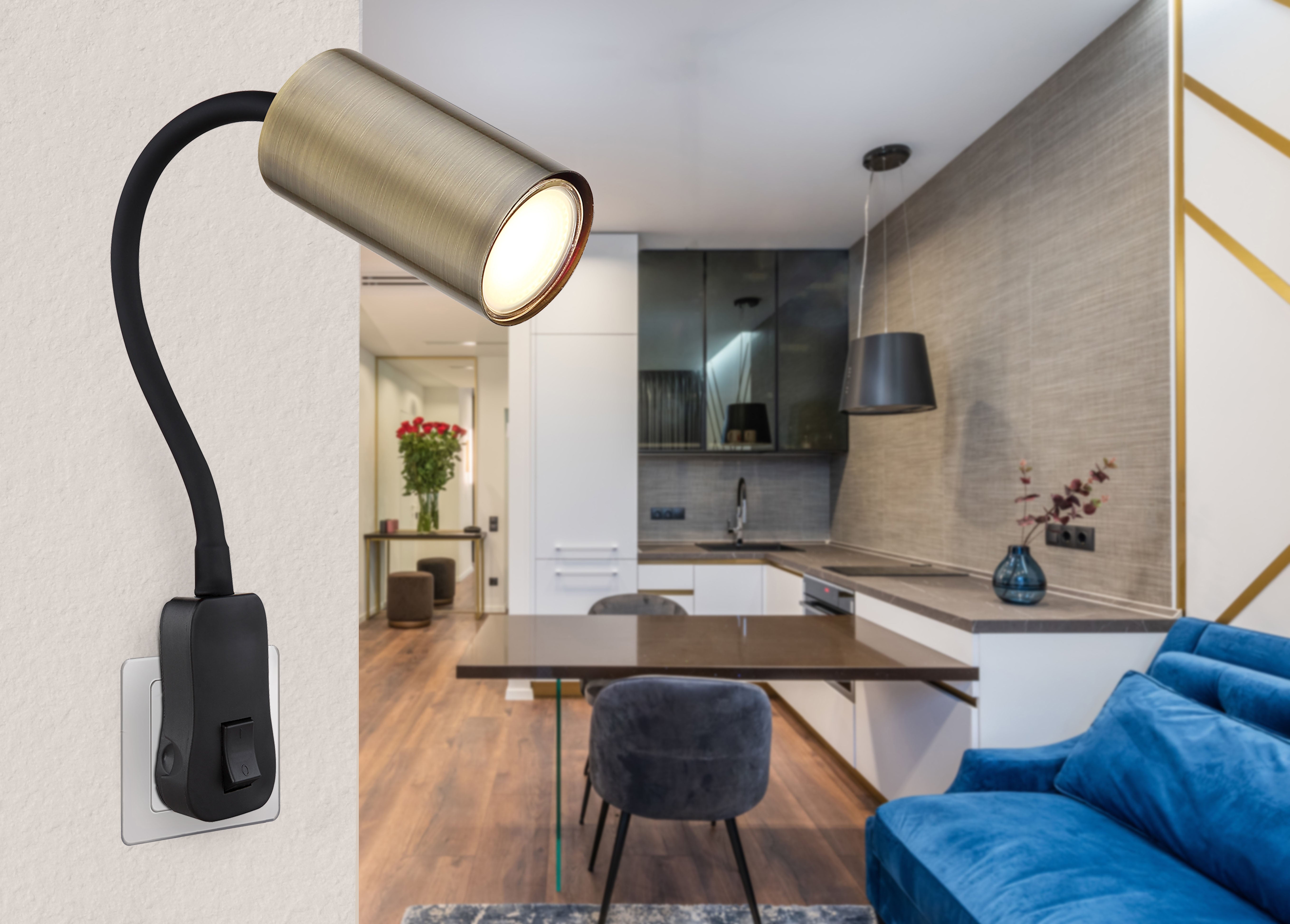 Globo Lighting Robby Wandleuchte mit Stecker, Kunststoff, schwarz, GU10