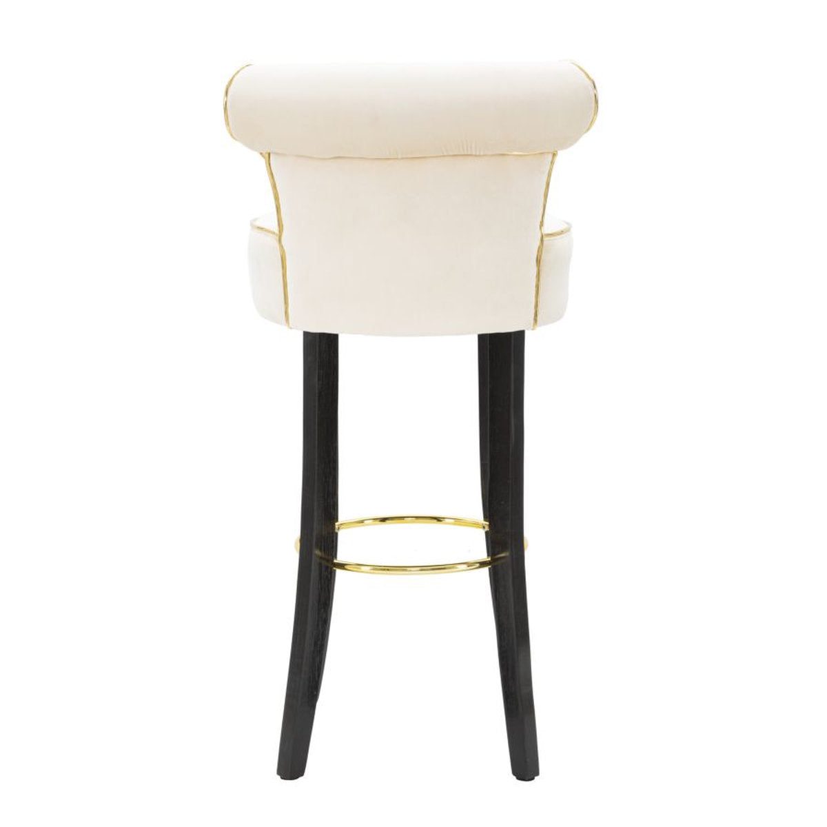 Round Bar Stool with Backrest & Gold Footrest – Velvet Upholstery