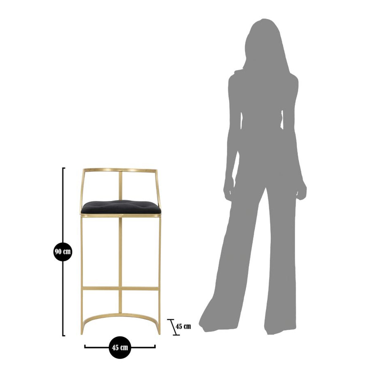 Goldener Barhocker aus Metall mit samtgepolstertem Sitz – Geometrische Linien