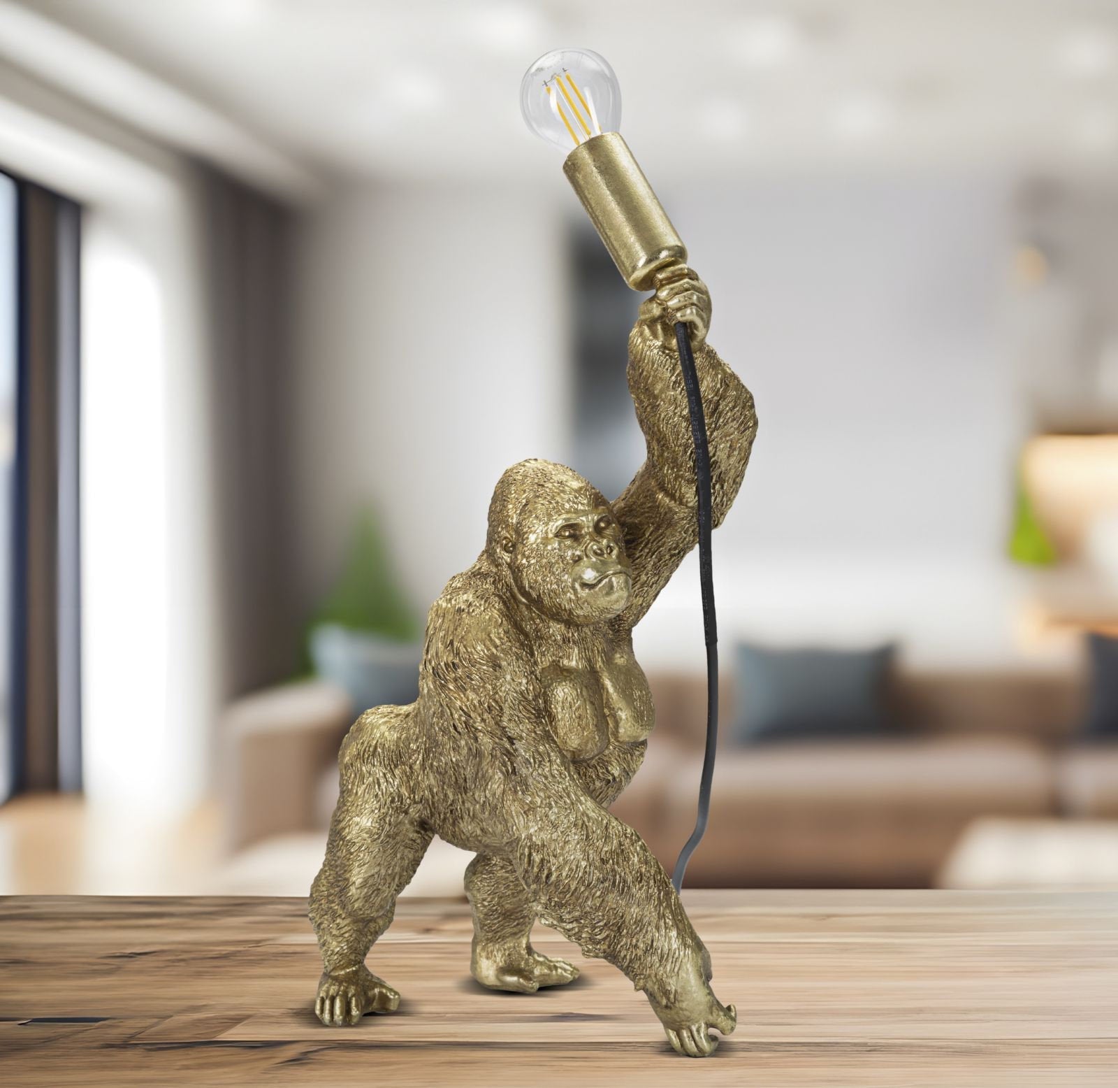 Goldene Gorilla-Tischleuchte aus Kunstharz – mit Glühbirnenhalterung