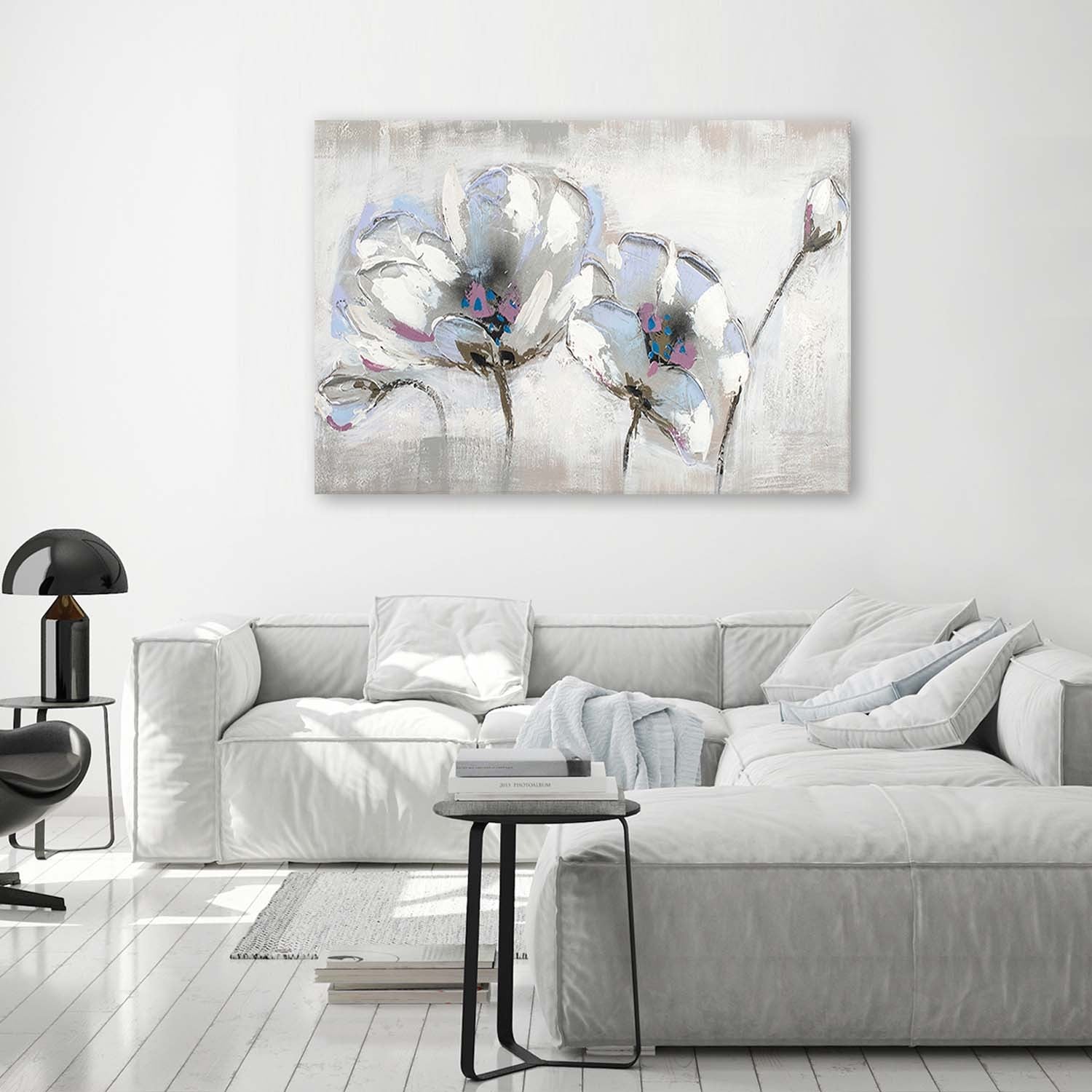 Canvas print, Painted flowers in white