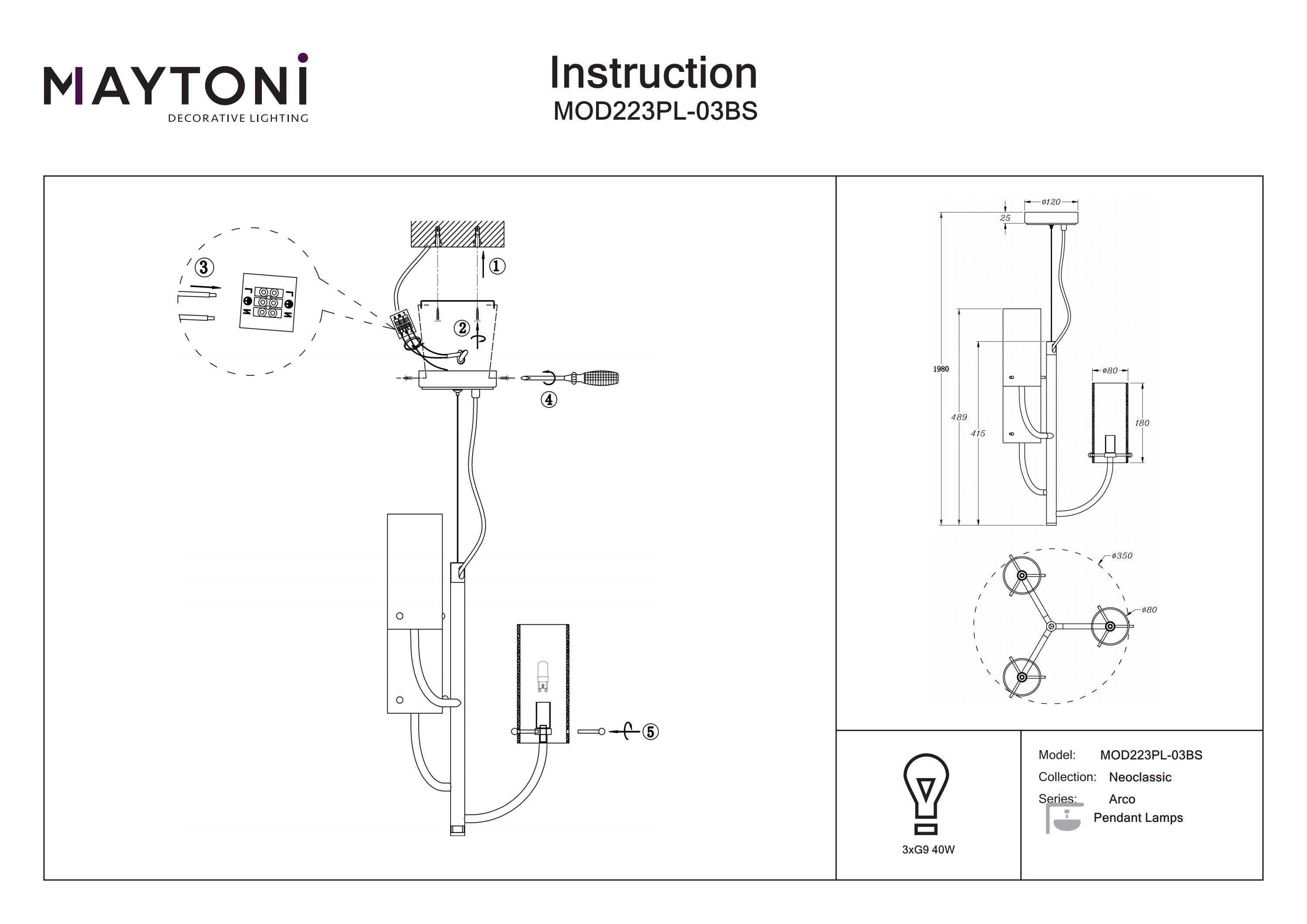Maytoni Arco 3L pendant lamp, brass G9 D 35cm