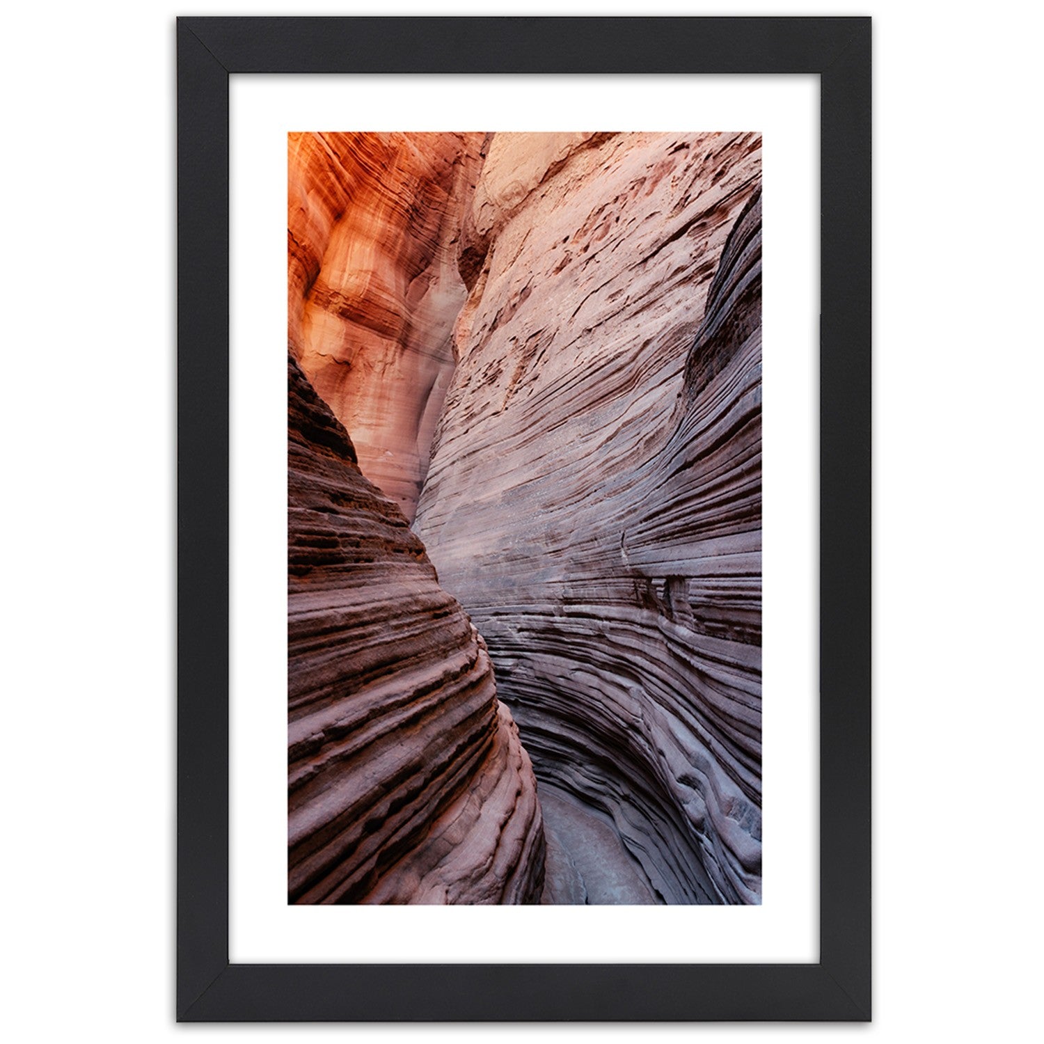 Picture in black frame, Pass between the rocks