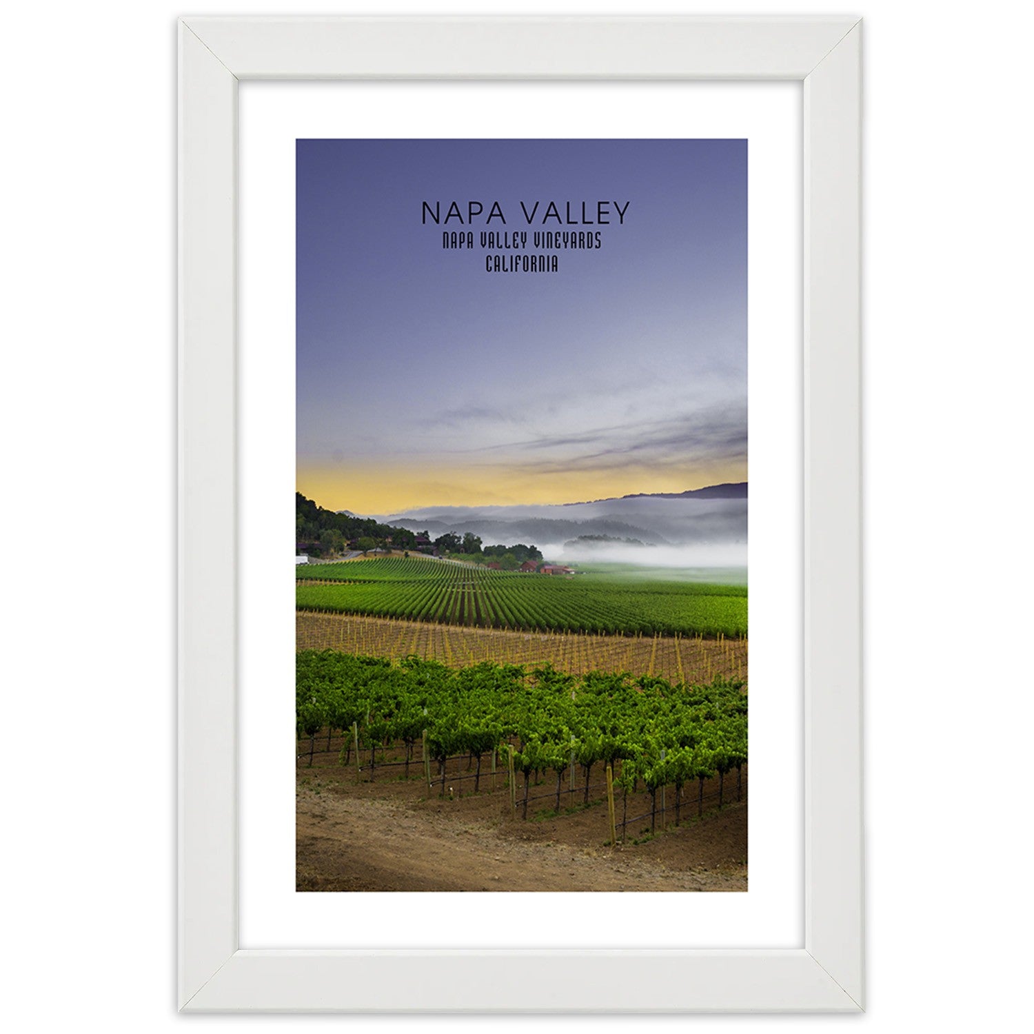 Bild im weißen Rahmen, Abend über dem Napa Valley