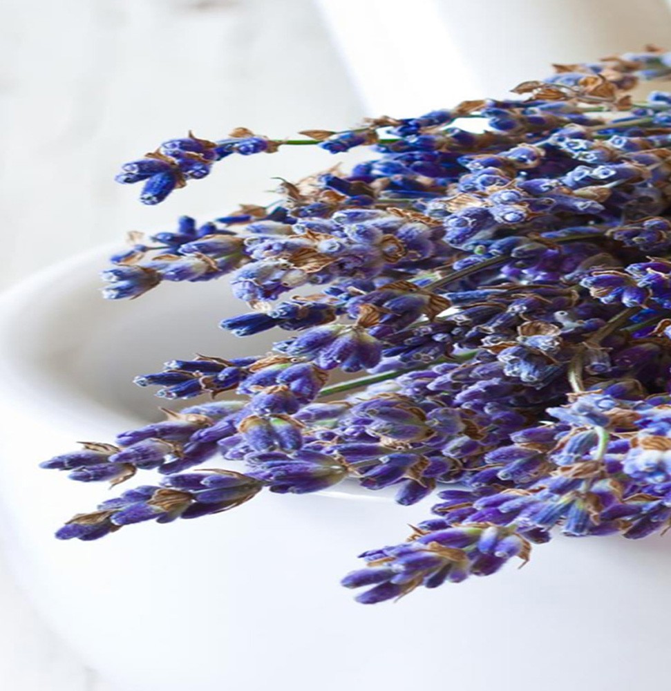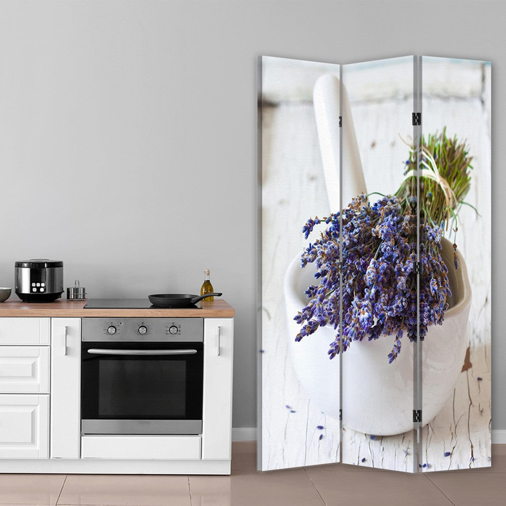 Raumteiler, doppelseitig drehbar, mit Lavendel- und Mörtelstrauß