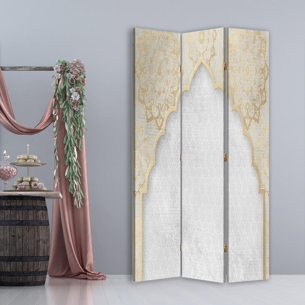 Room divider Double-sided rotatable, Oriental pattern in gold