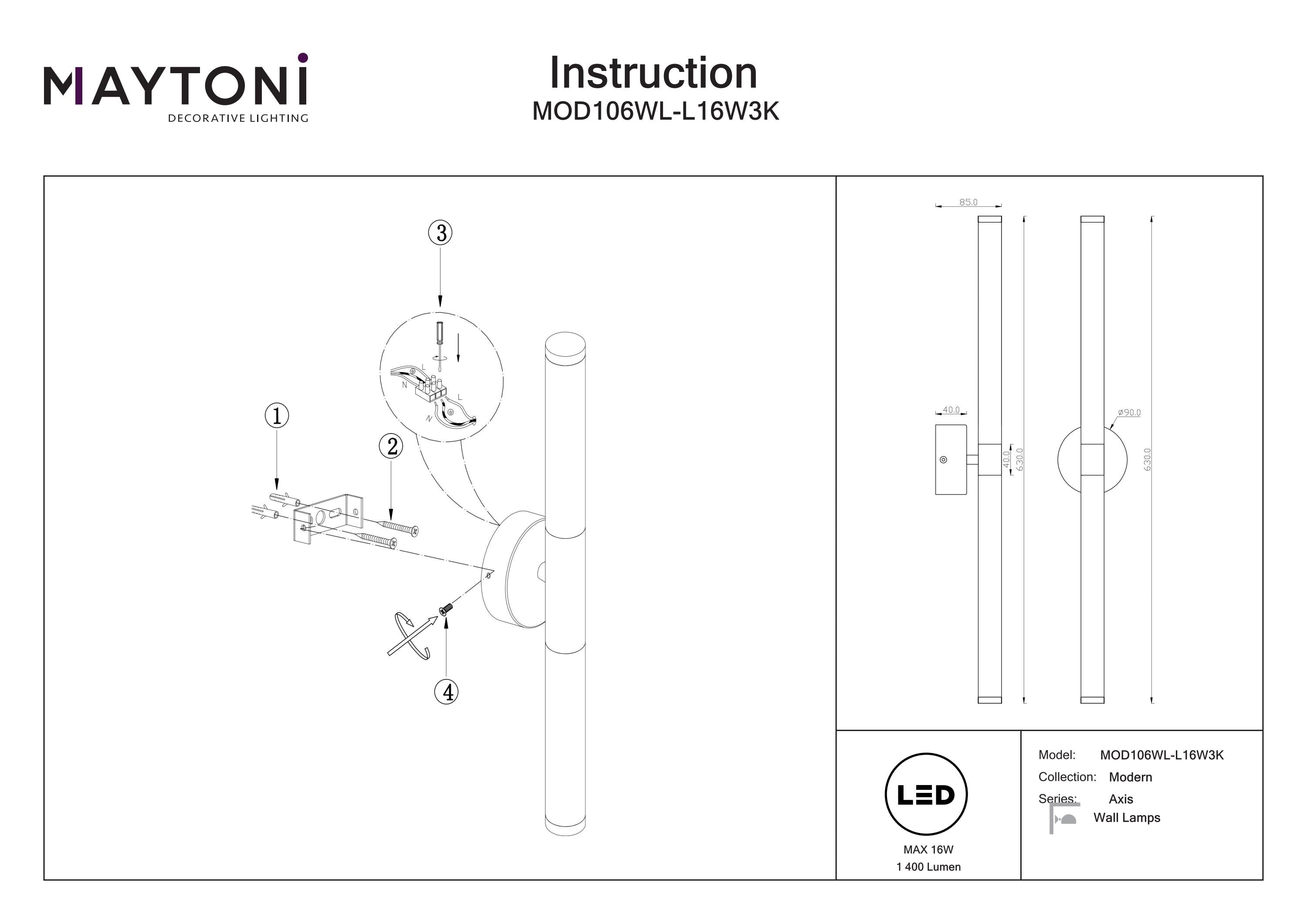 Maytoni Axis 1L wall lamp, LED H 63cm