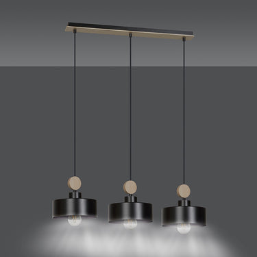 Linear suspension lamp TUNISO 3L, black, E27