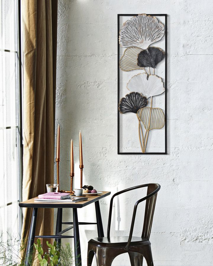 Panel metálico inspirado en hojas: decoración natural contemporánea en 3D