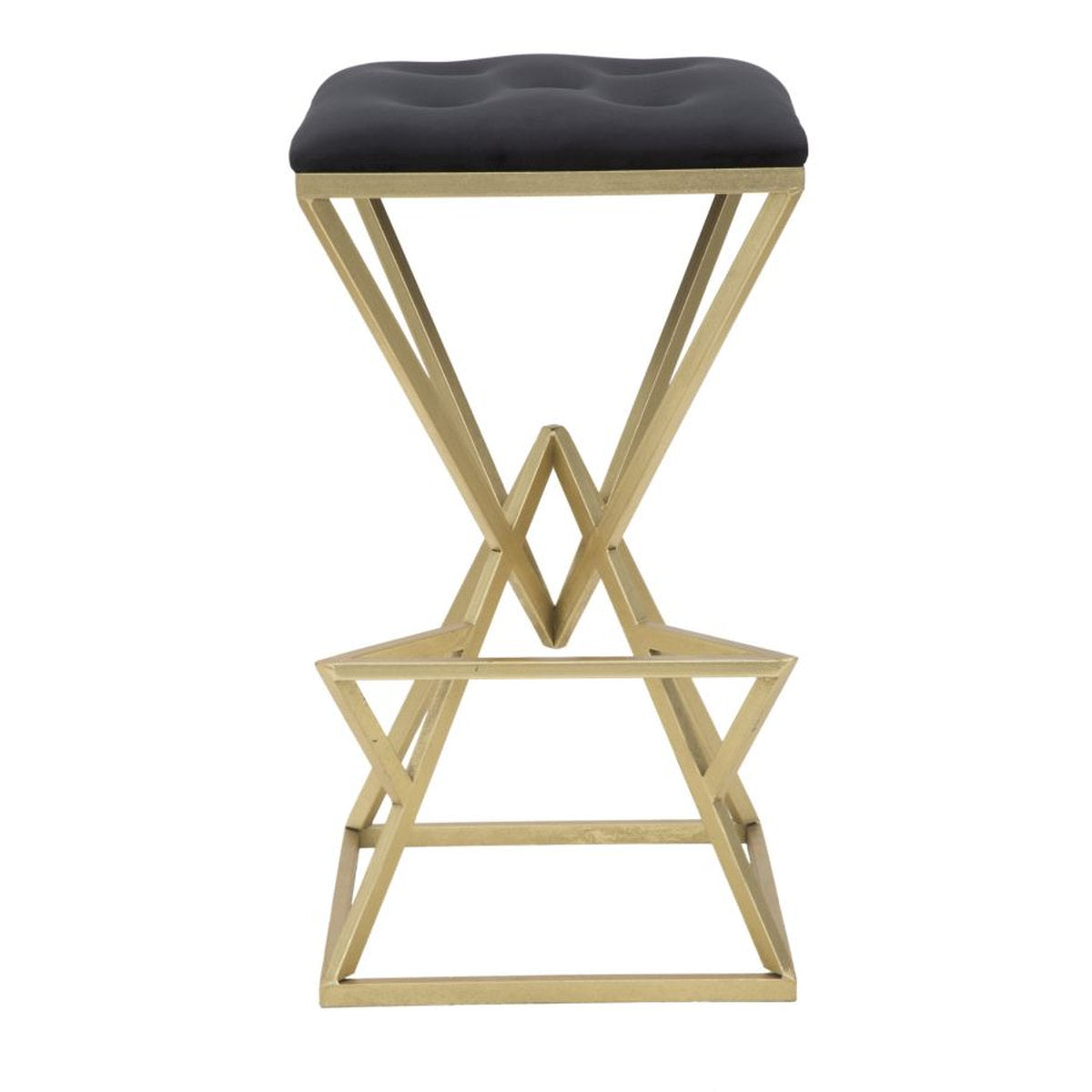 Taburete de bar de metal dorado y tela – Diseño geométrico glamuroso