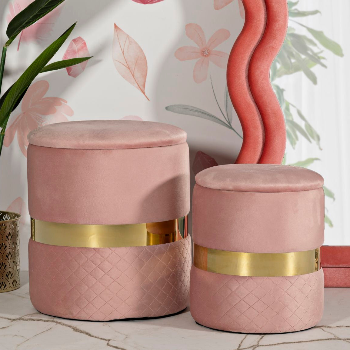 Mauro Ferretti puff with storage sheffild pink set 2 pcs metal