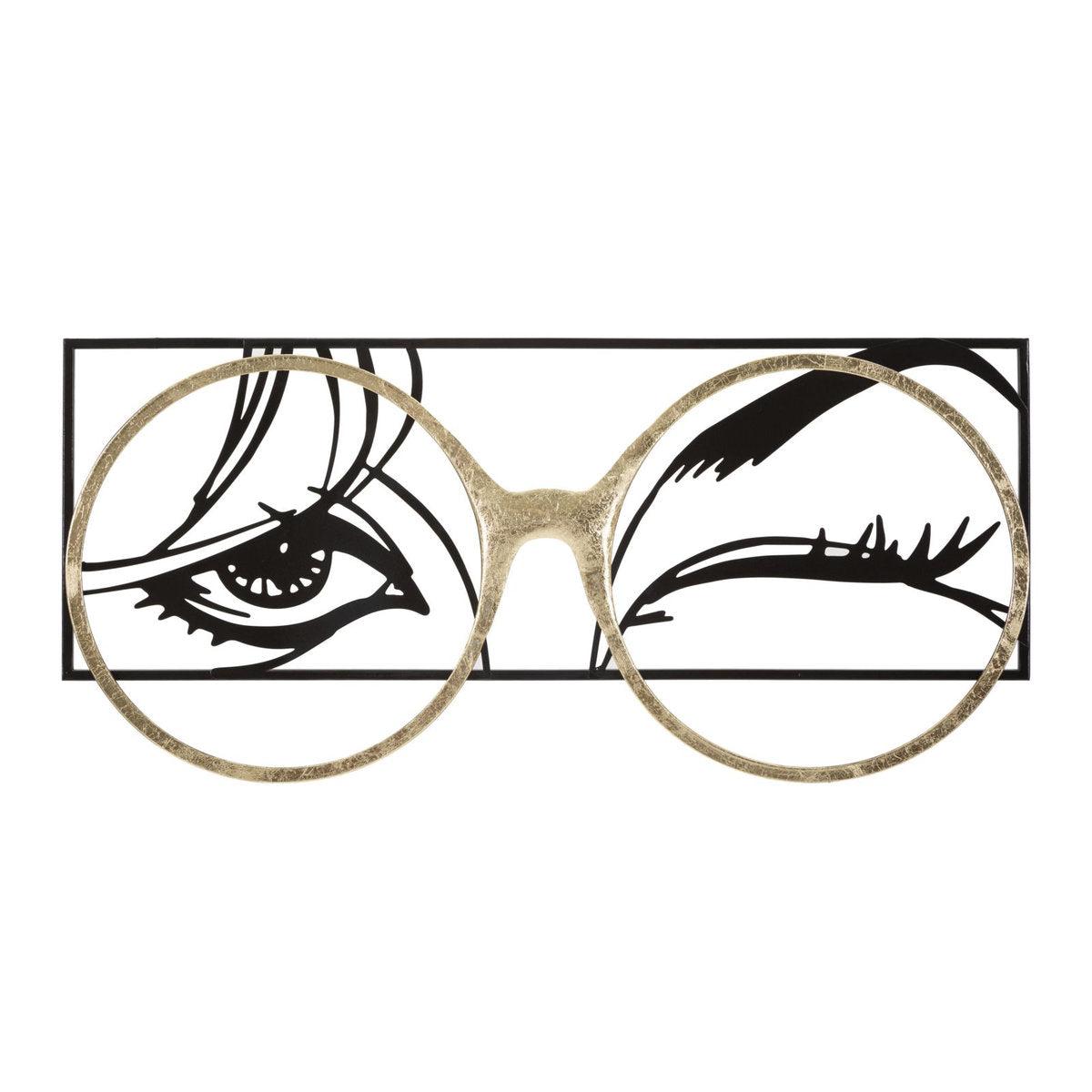 Black Metal Face Panel with Golden 3D Glasses