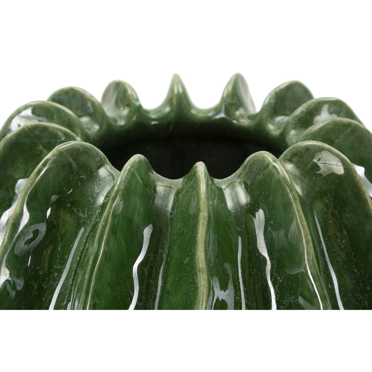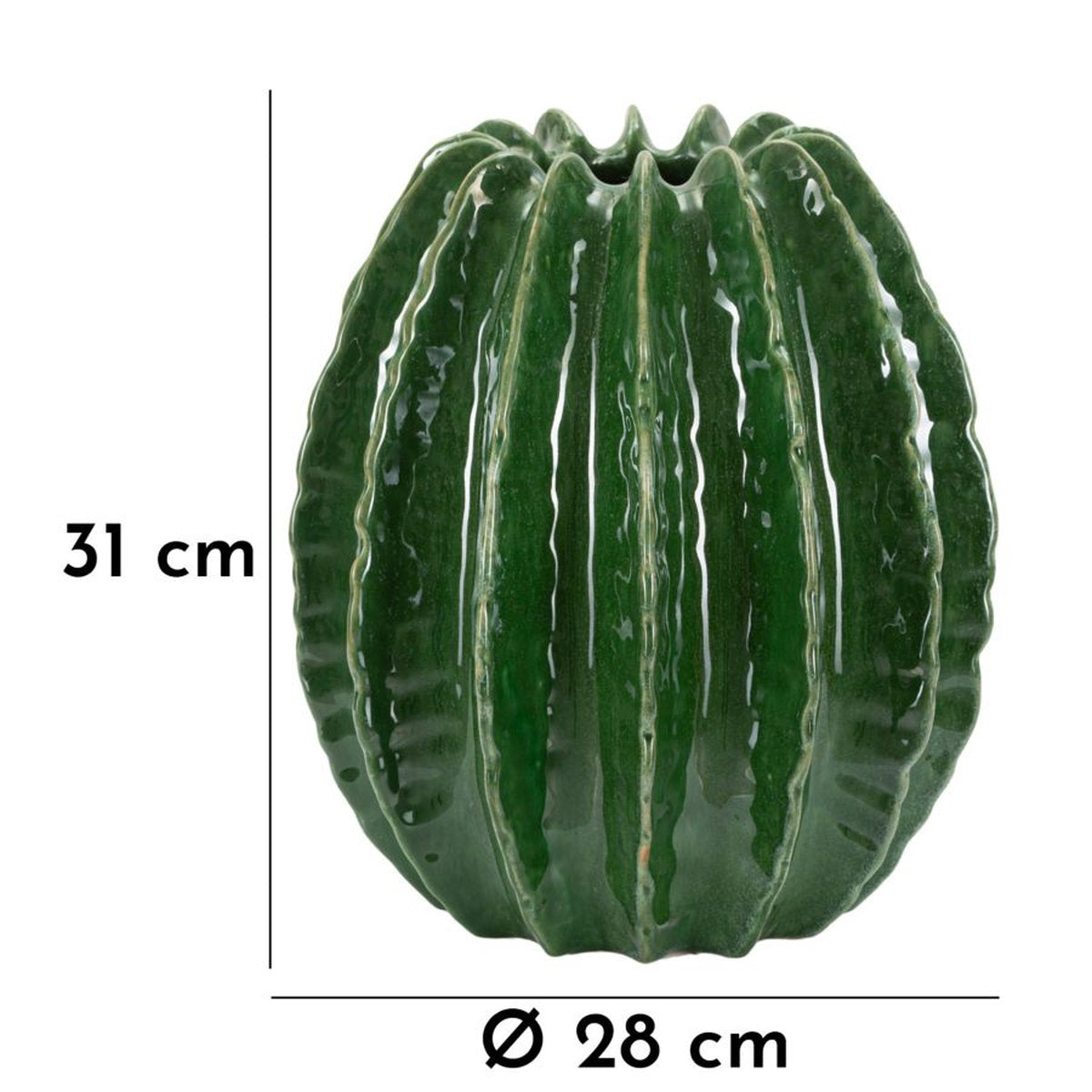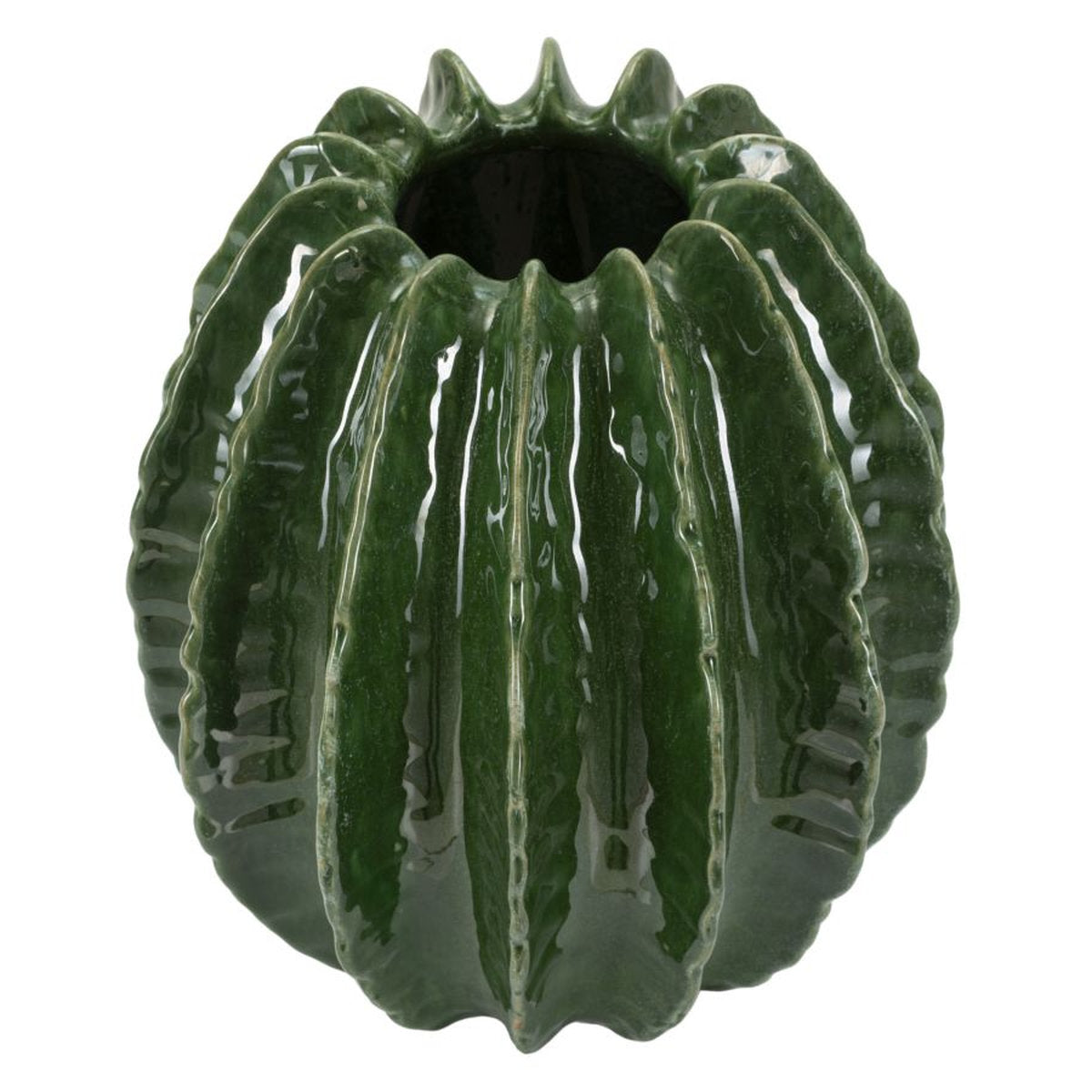 Jarrón redondo inspirado en cactus con acabado brillante en relieve