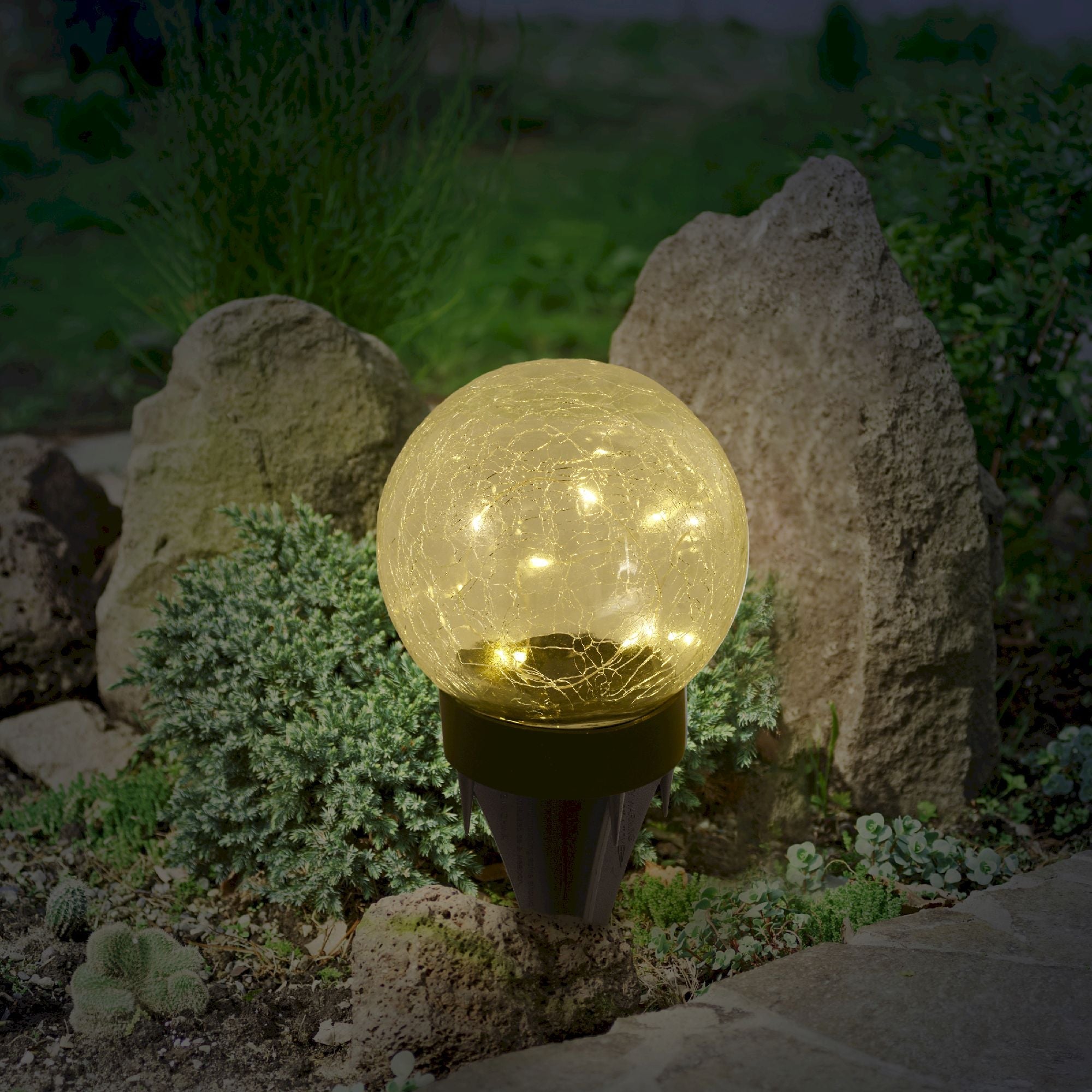 Näve Set of 3 LED Solar Table Lamp/Ground Spike Crackle l/w: 12cm