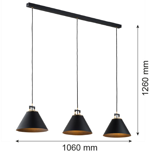 Argon Orte 3L linear suspension pendant lamp E27 H 106cm