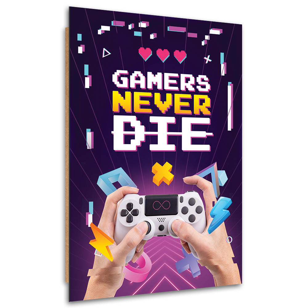 Deco panel print, Gamers Never Die inscription