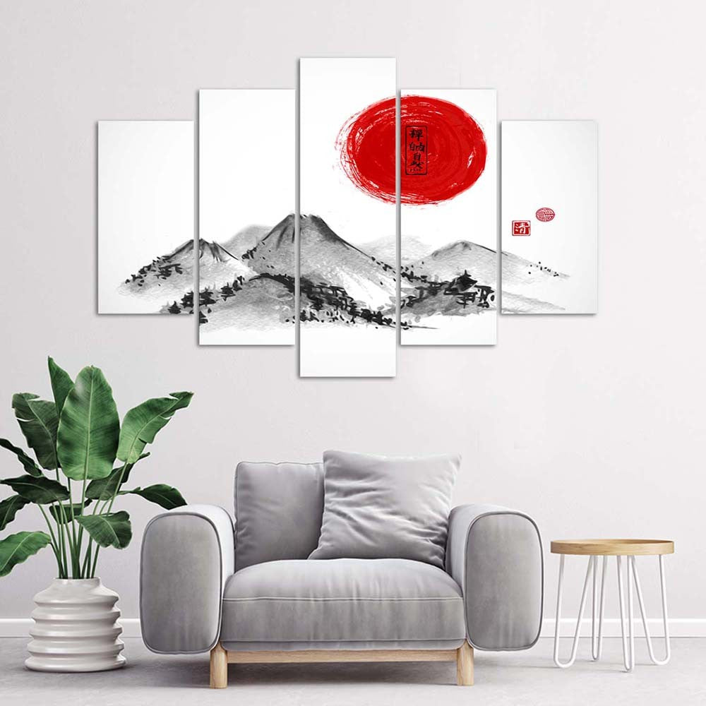 Five piece picture canvas print, Sunset over japan
