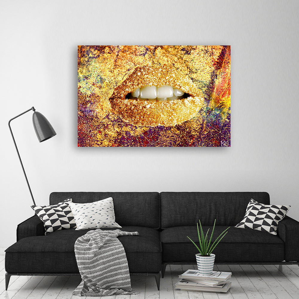 Canvas print, Abstract gold lips