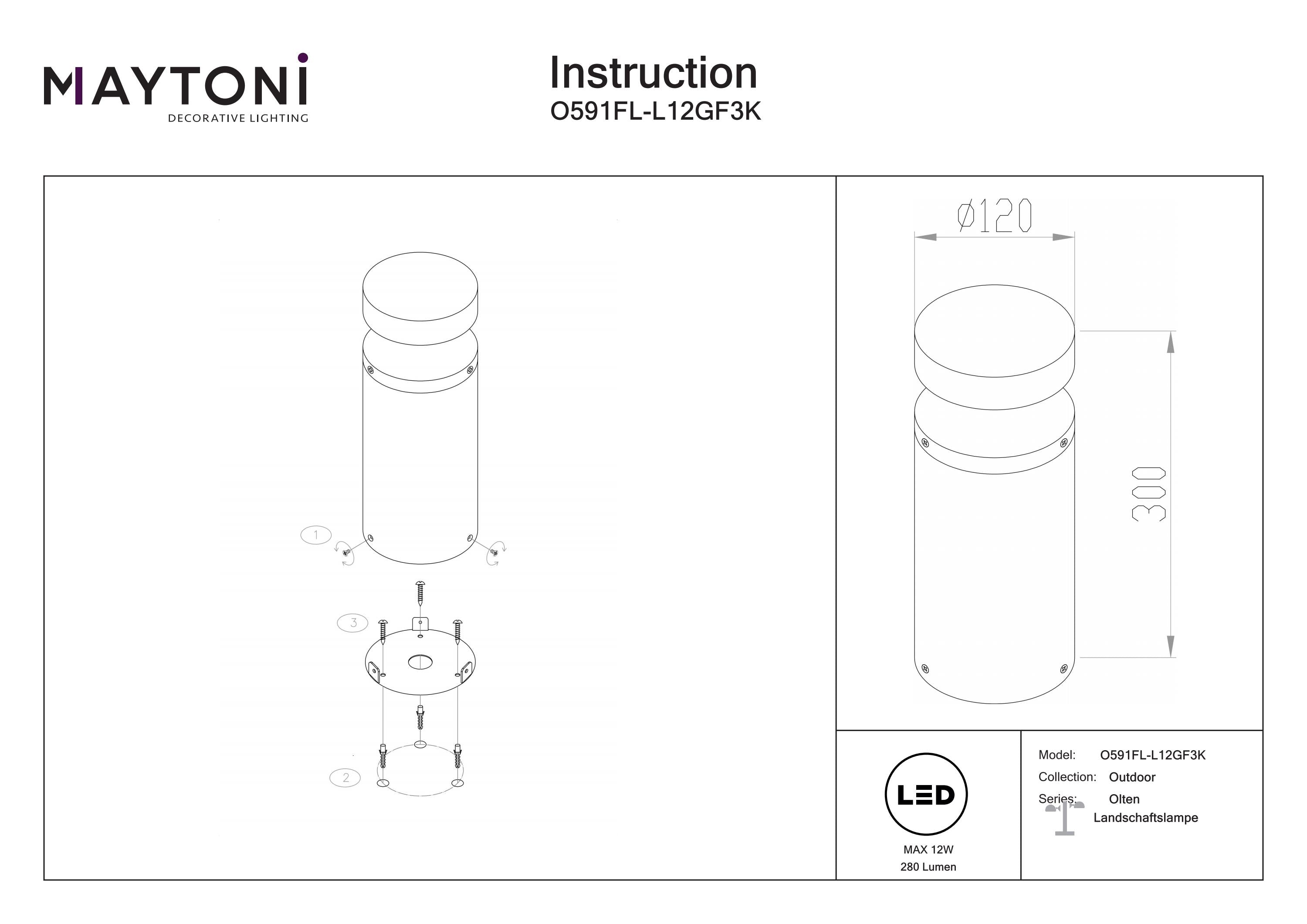 Maytoni Olten 1L, graphite LED D 12cm