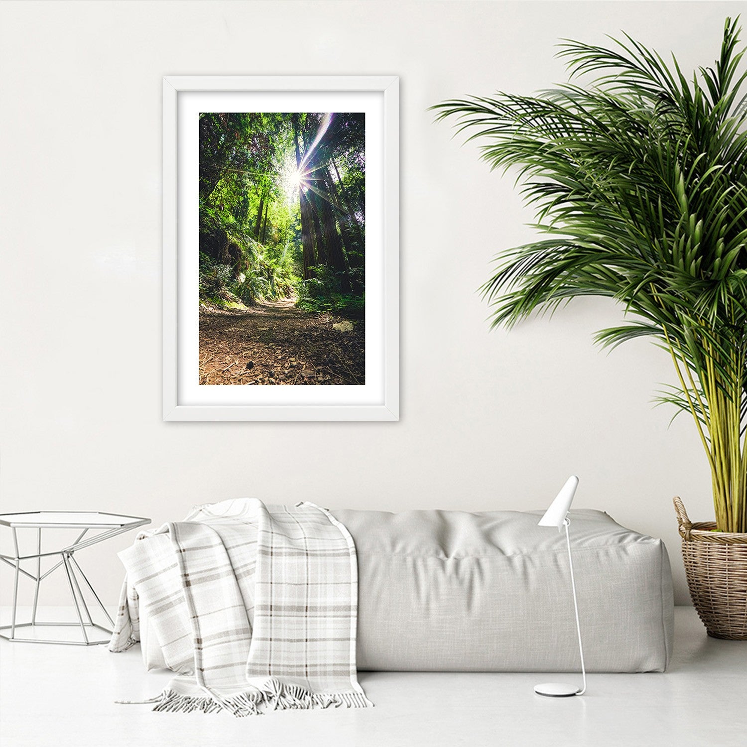 Picture in white frame, Path in a dense forest