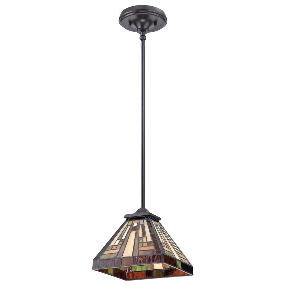 Lámpara colgante Quoizel Stephen 1L, cristal Tiffany, metal, E27
