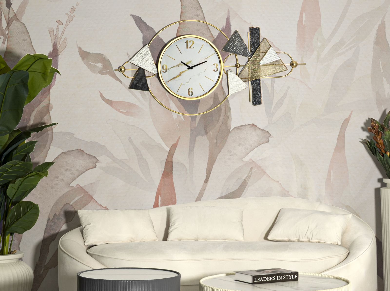 Horloge murale géométrique en métal doré – Élément décoratif moderne
