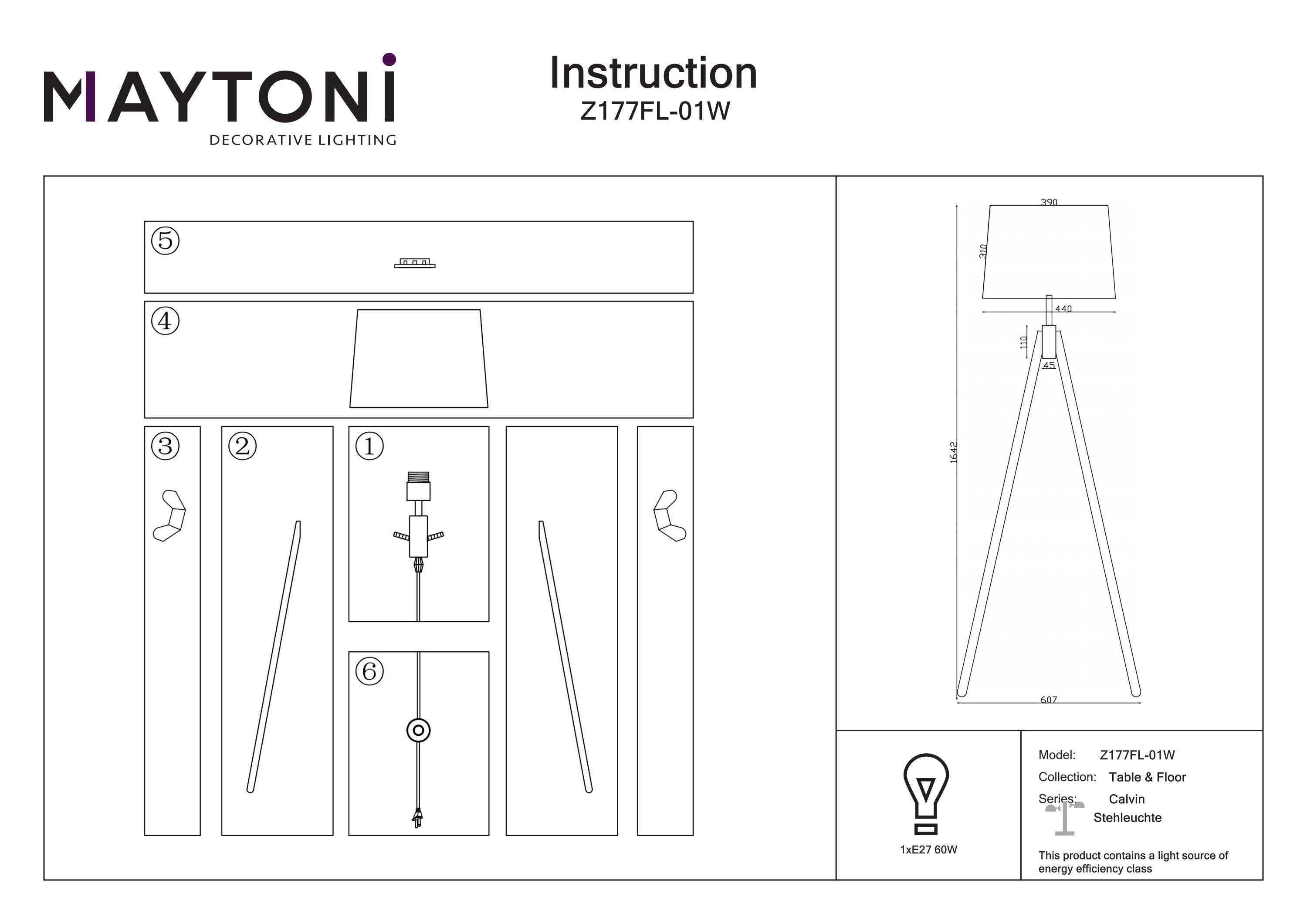 Maytoni Calvin 1L floor lamp, white E27 D 44cm