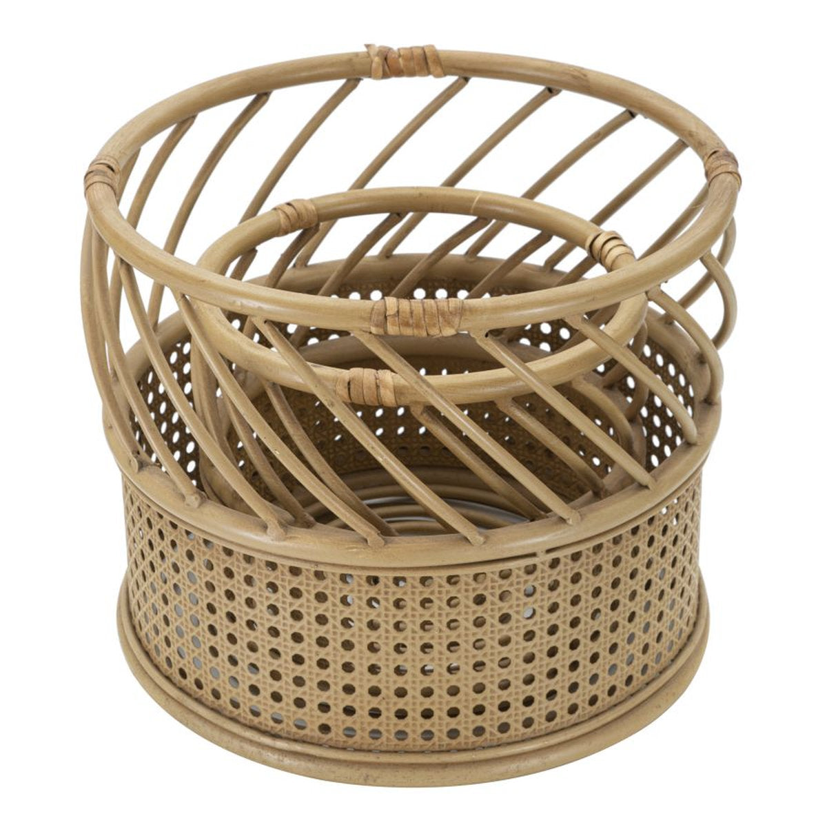 Paire de supports à vase ronds en métal et rotin – Style paille viennoise