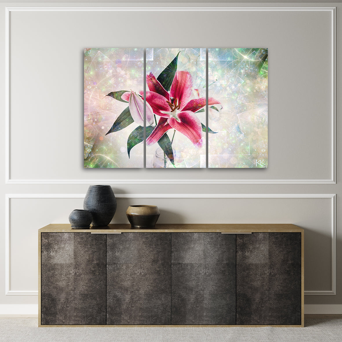 Three piece picture canvas print, Pink lily flower