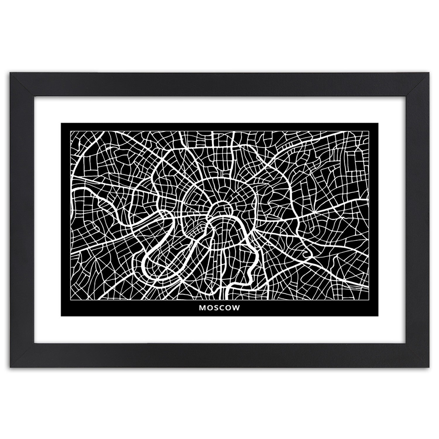 Image encadrée en noir, plan de la ville de Moscou