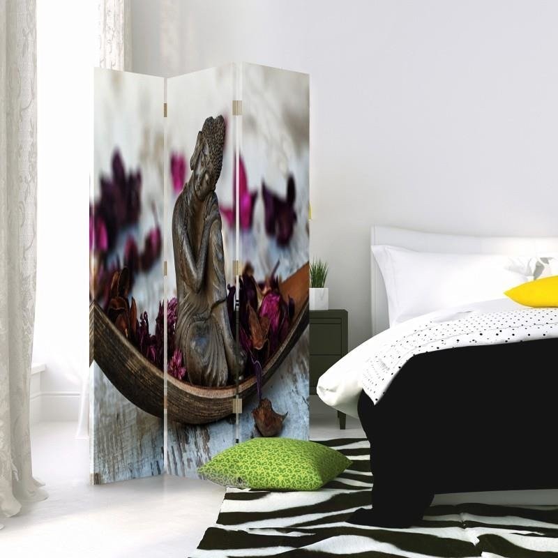 Paravent double face rotatif, Bouddha aux pétales violets