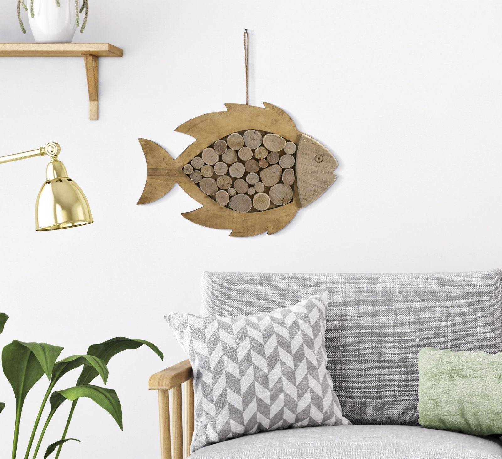 Wooden Fish Hanging Sculpture with Rounded Elements