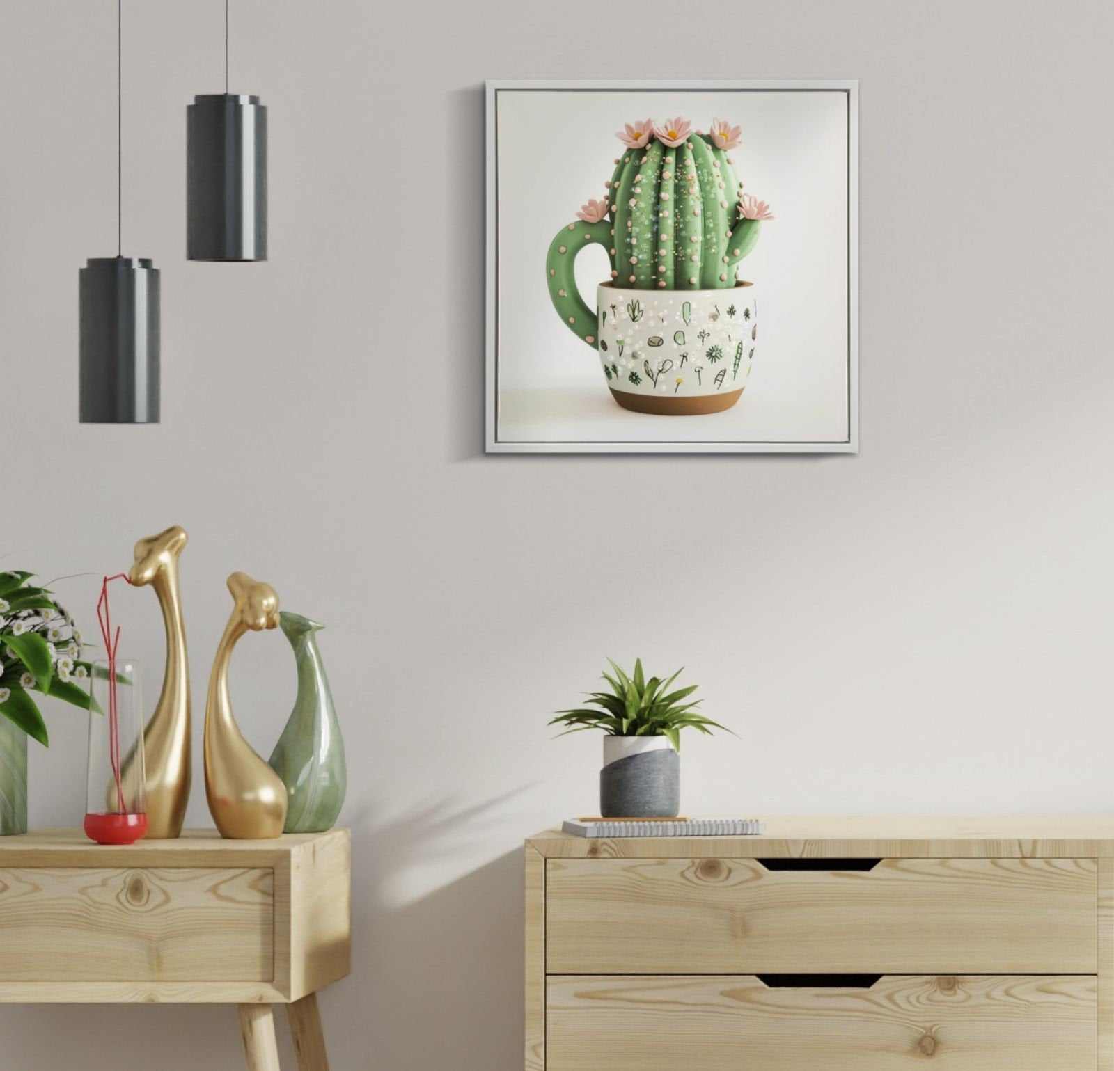 Stampa murale di cactus: decorazione verde delicata e giocosa