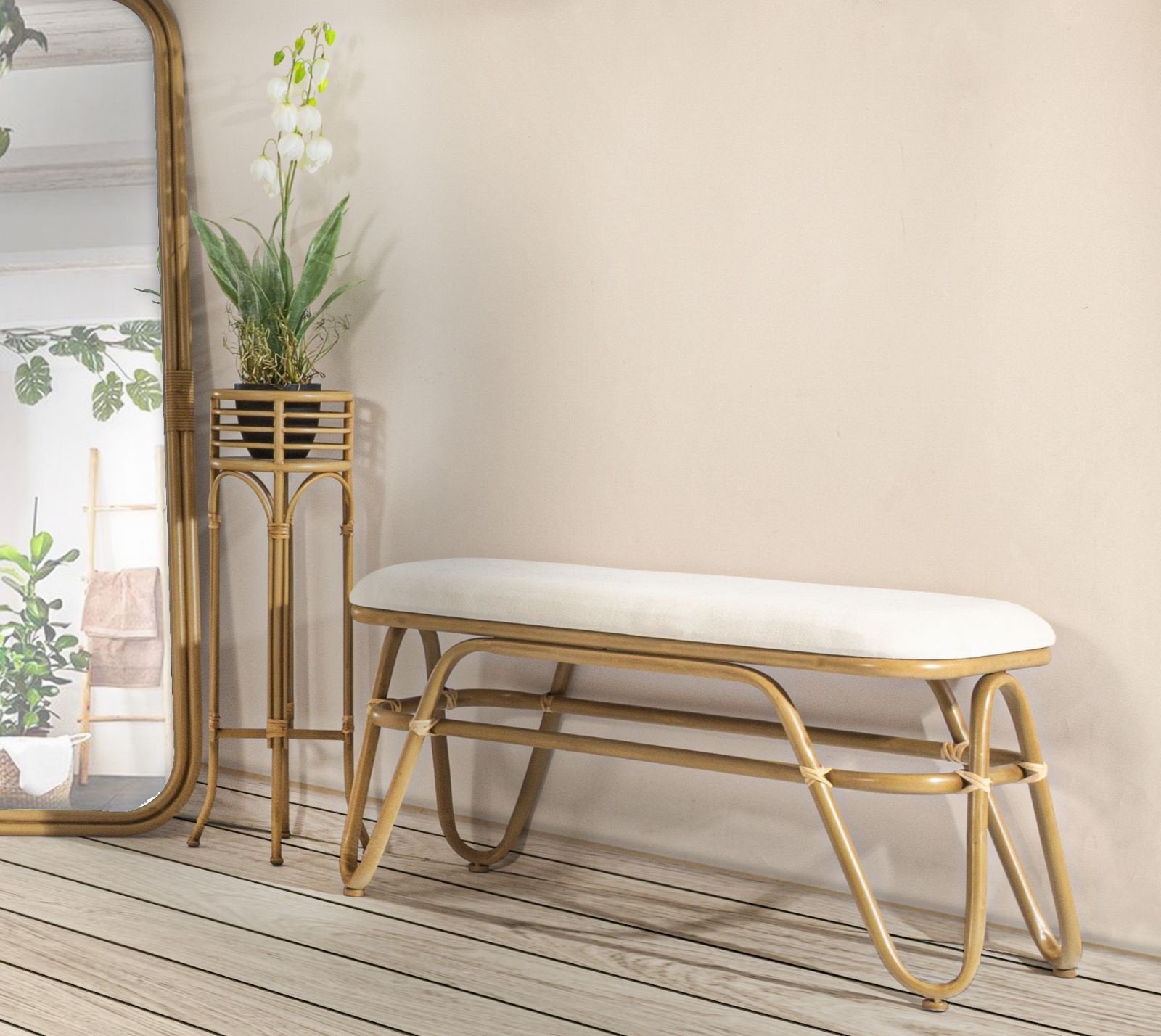 Round Metal Pedestal Plant Pot with Rattan Trim