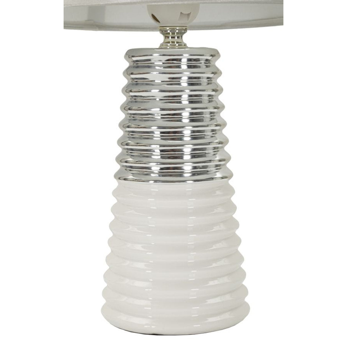 White and Silver Ceramic Lamp with Concentric Circle Decoration