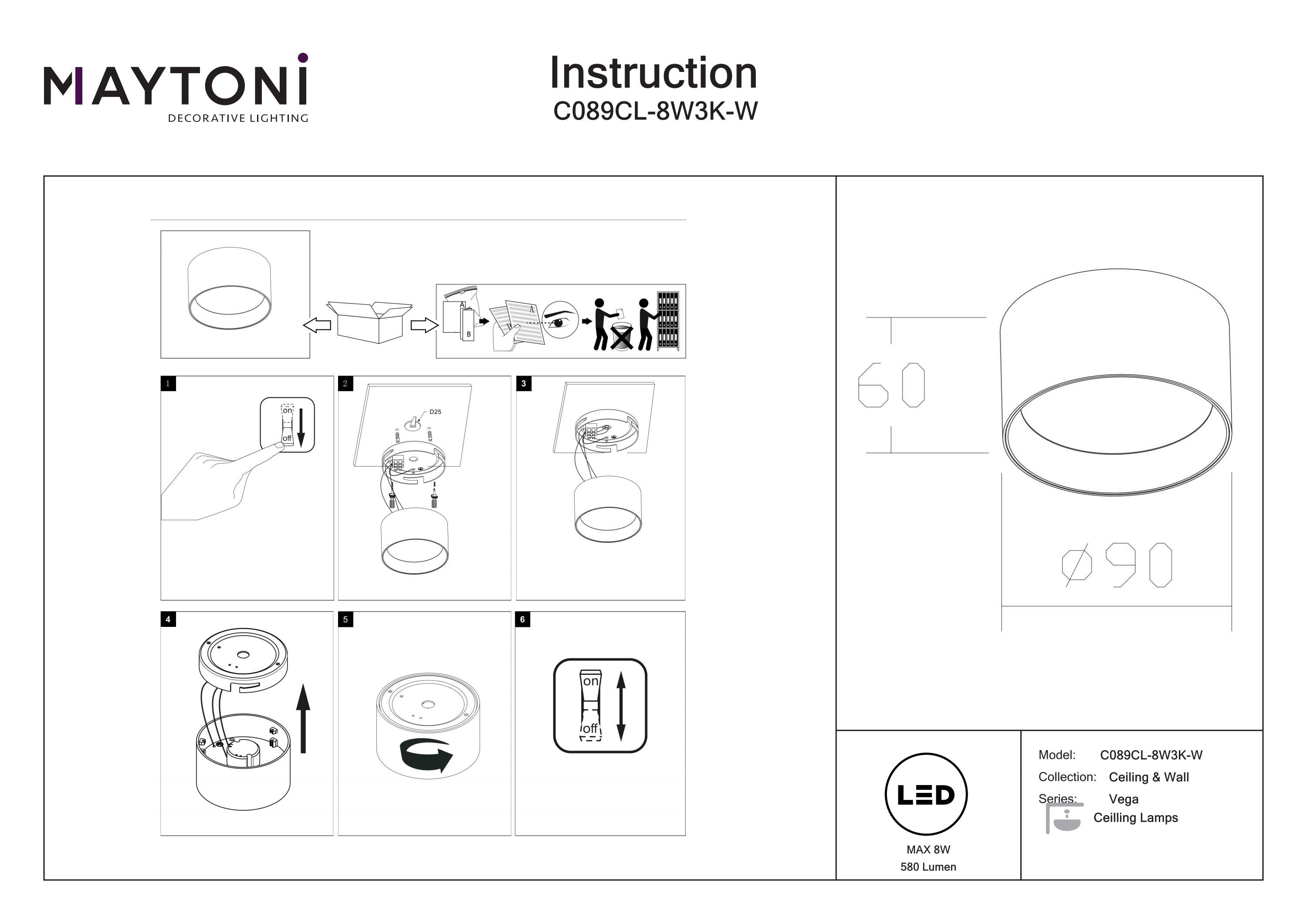 Maytoni Vega 1L ceiling spotlight, LED D 9cm