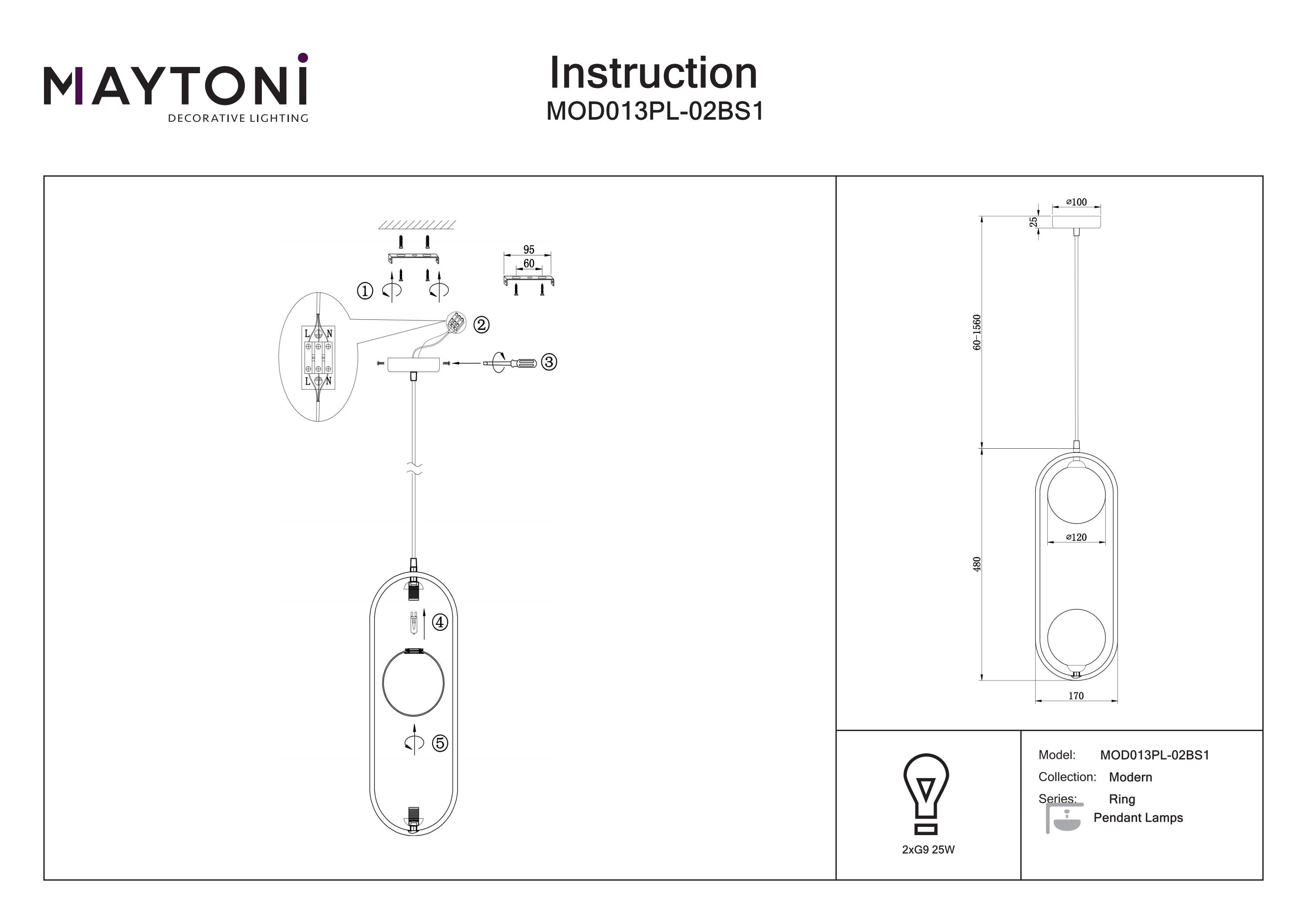 Maytoni Ring 2L pendant lamp, brass G9 D 12cm