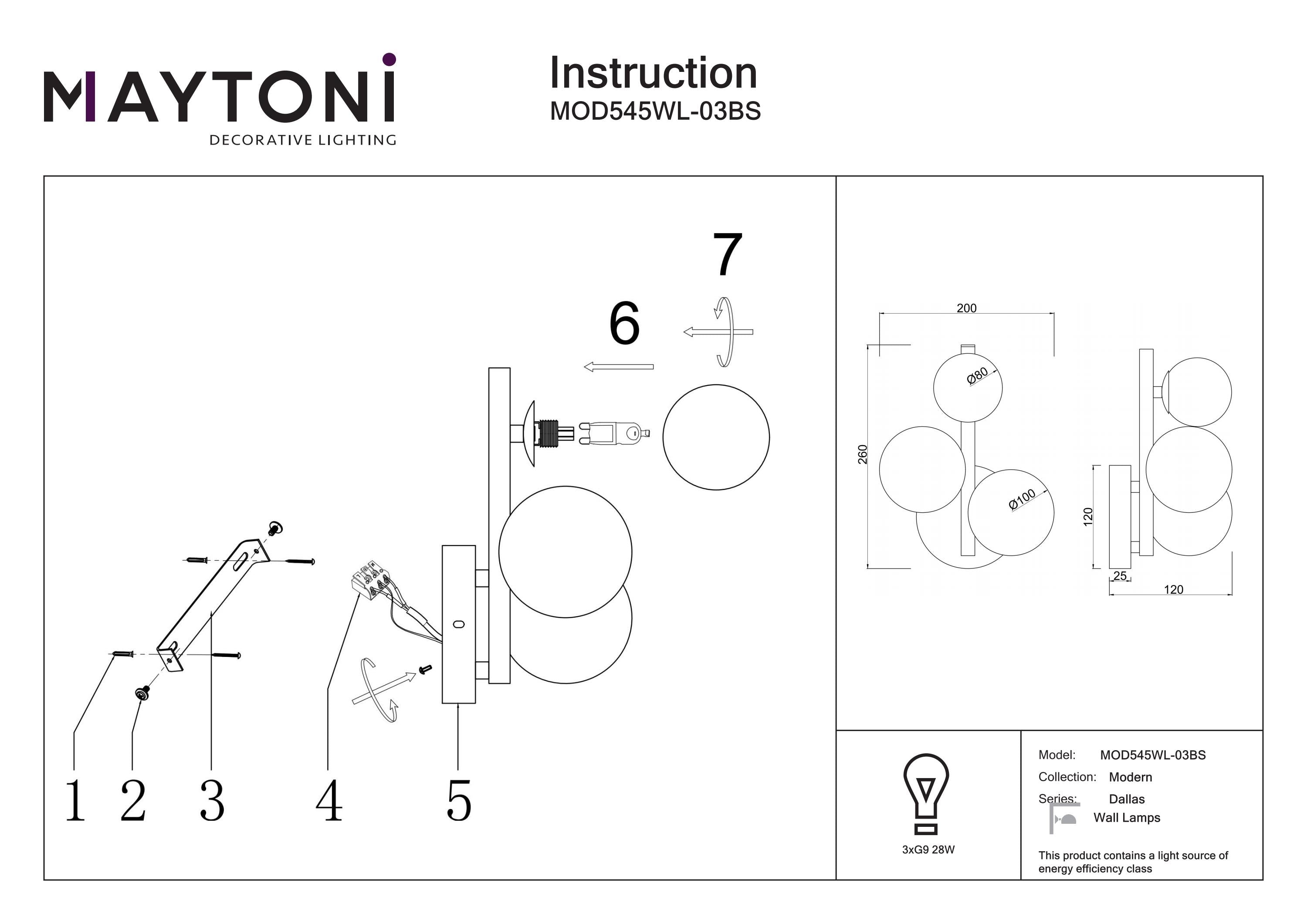 Maytoni Dallas 3L wall lamp, black G9 H 26cm
