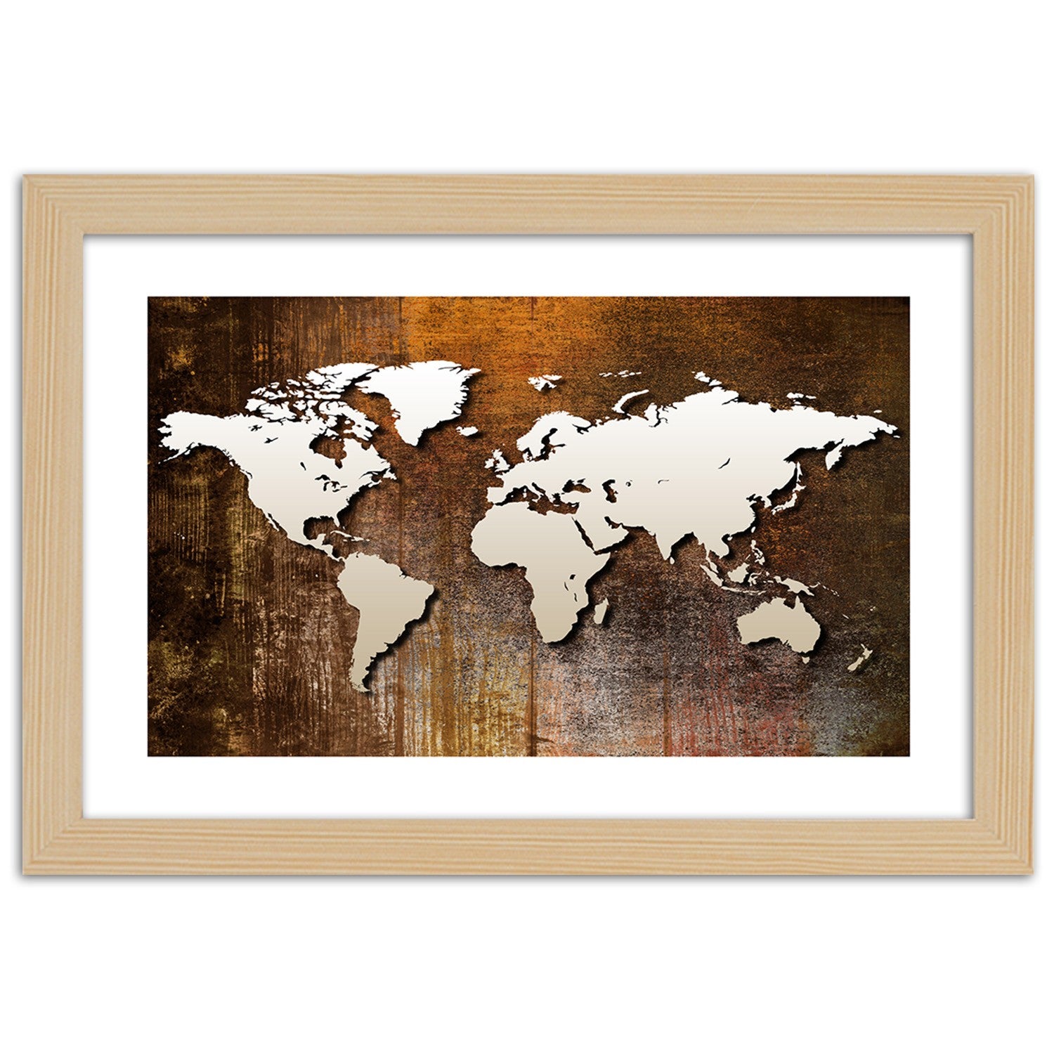 Picture in natural frame, World map on wood