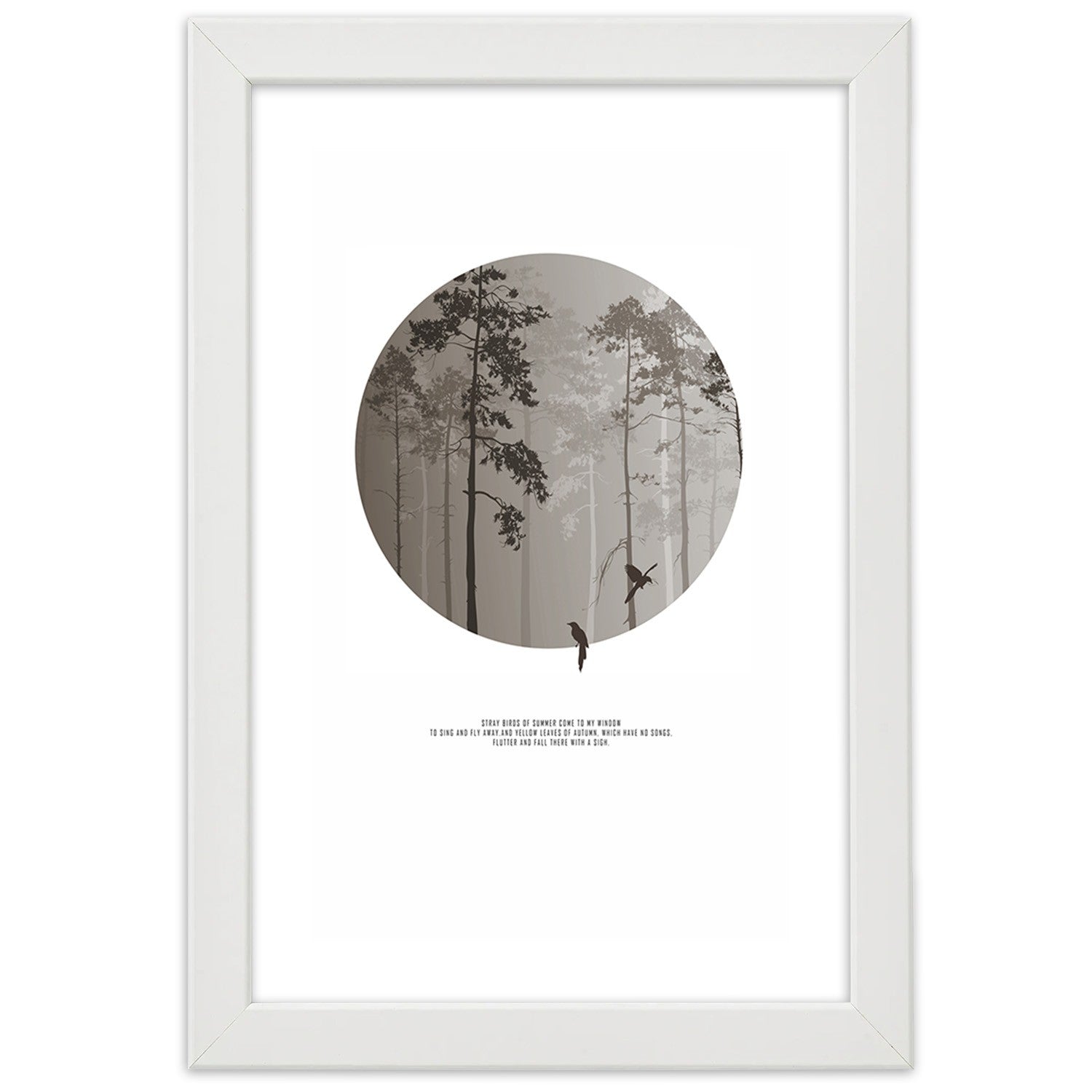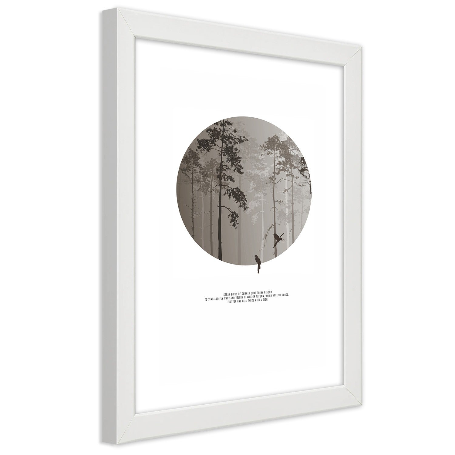 Picture in white frame, Birds in a forest