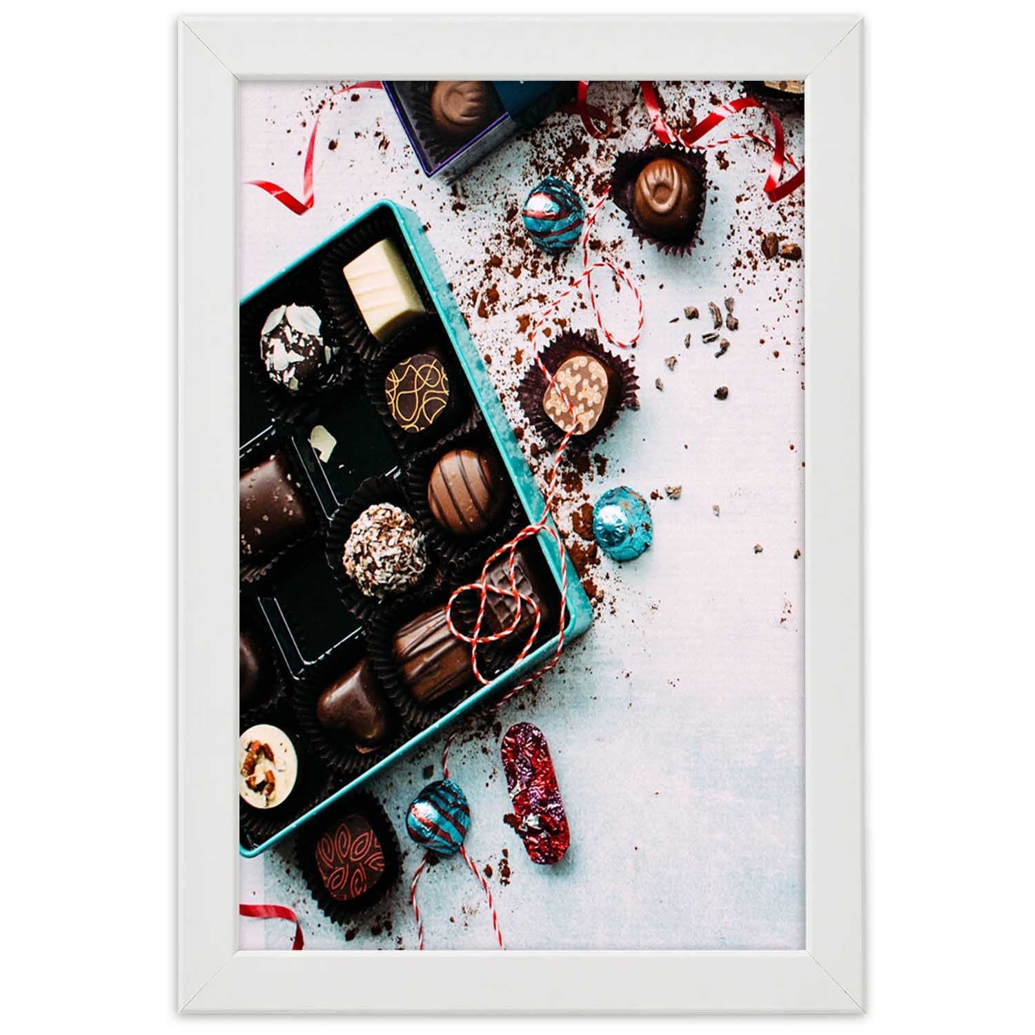 Picture in white frame, Colorful pralines