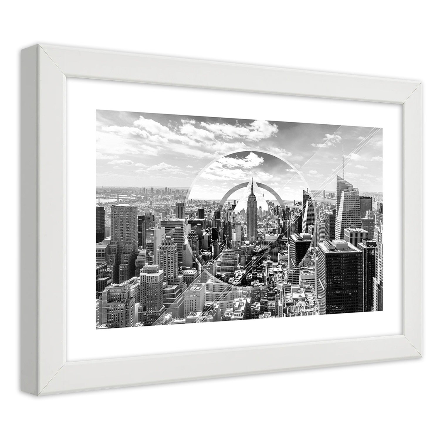 Picture in white frame, View of skyscrapers
