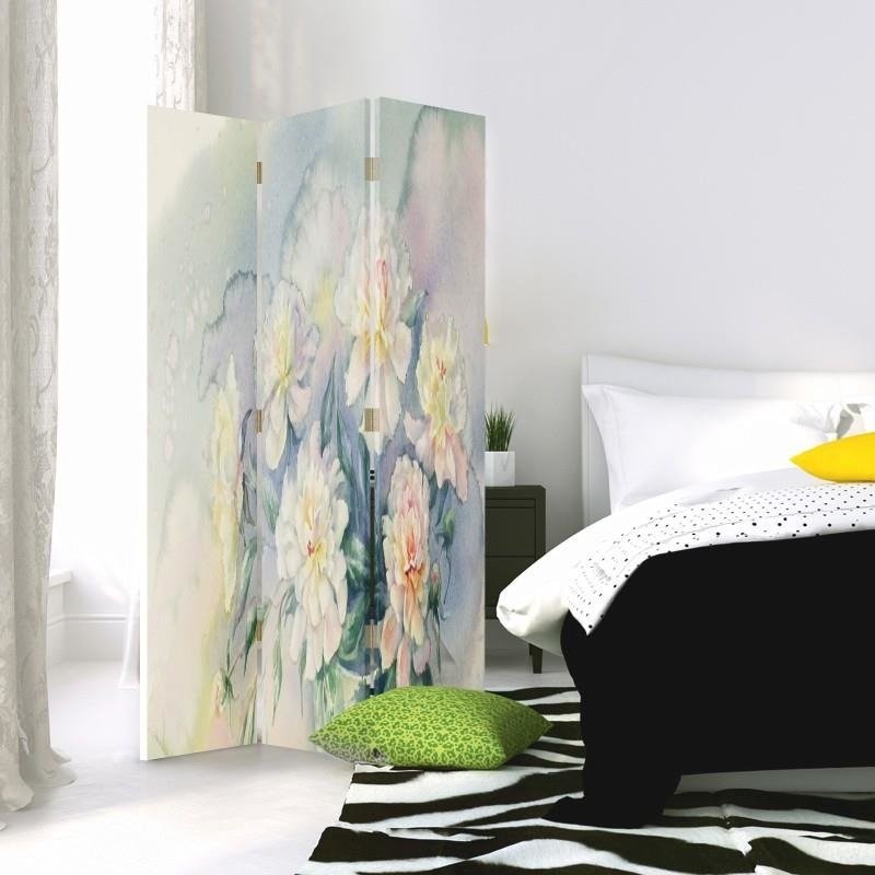 Room divider Double-sided rotatable, Delicate pastel flowers