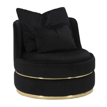 Black Fabric Armchair with Gold Accents & 2 Cushions