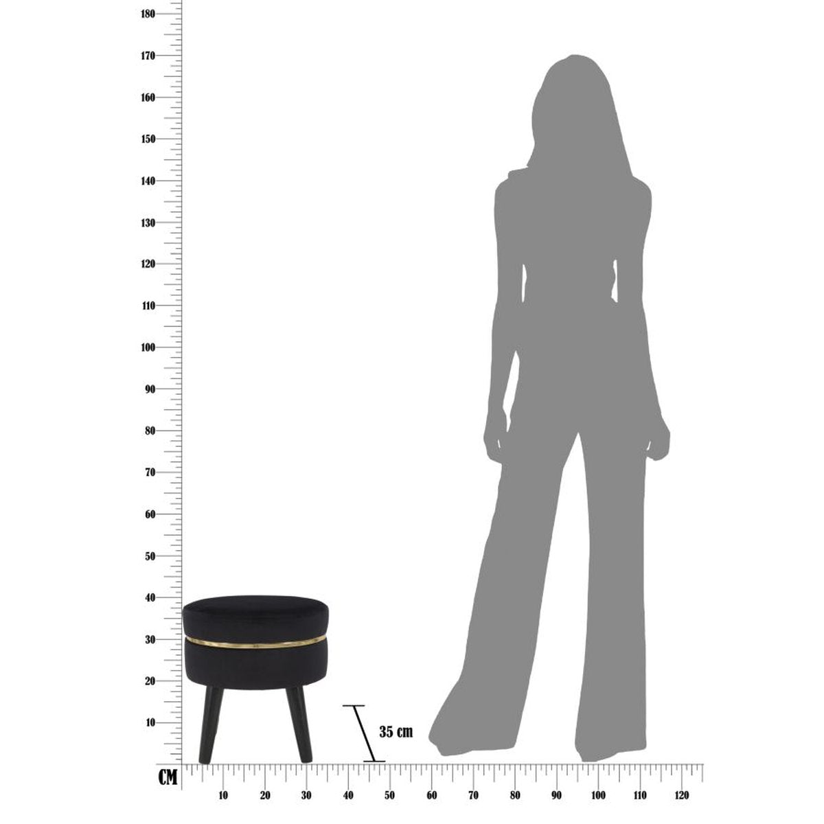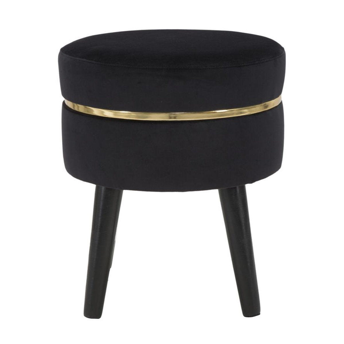 Zwarte fluwelen houten kruk met gouden rand – Retro Glam
