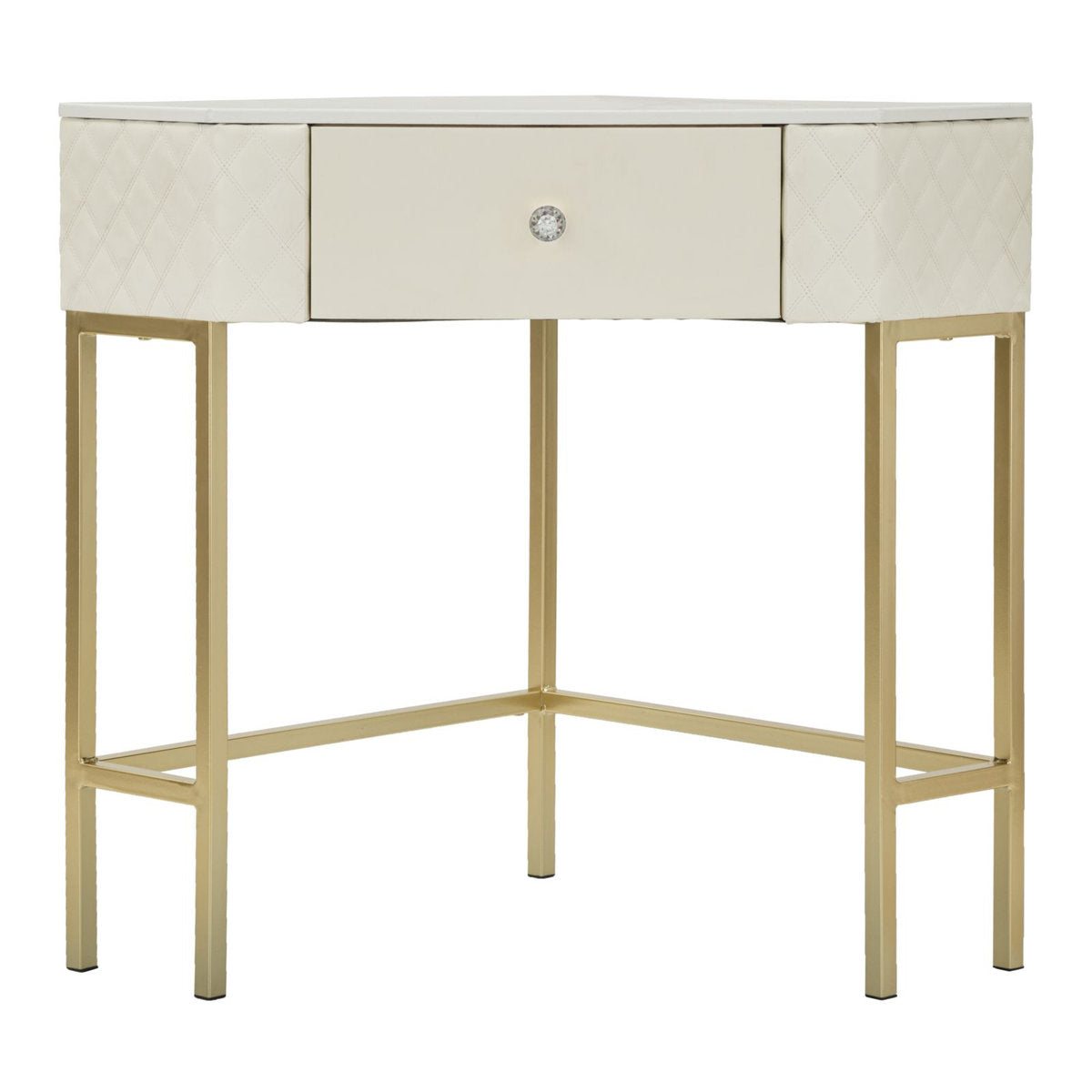 Quilted Leather Corner Console with Golden Legs & Footrest
