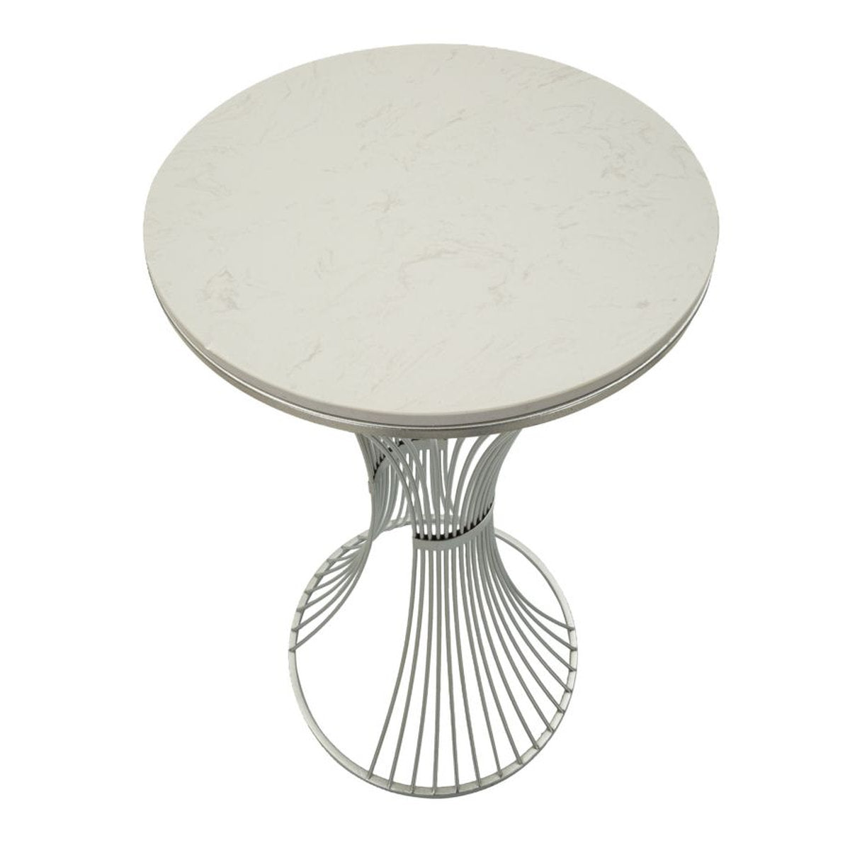 Silver Metal Table with Intertwined Base & Marble Top