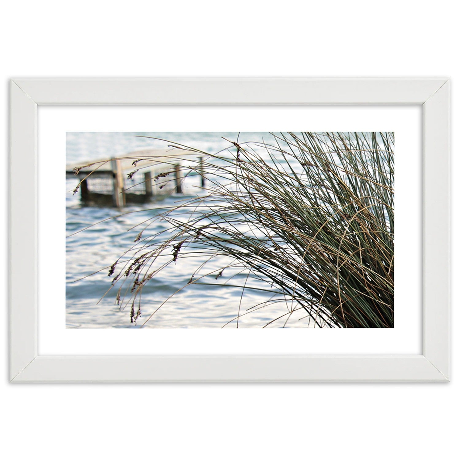 Picture in white frame, Jetty on the sea
