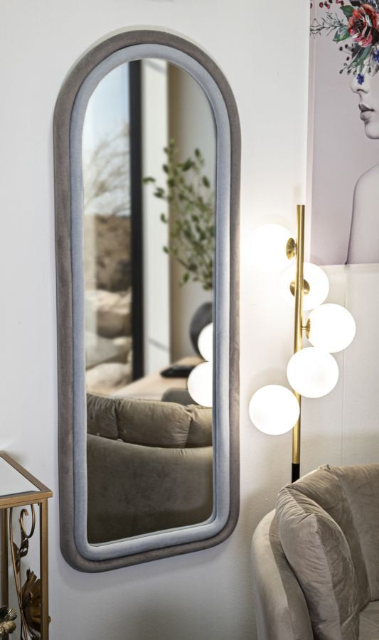 Minimalist Fabric-Covered Wall Mirror with Arched Design